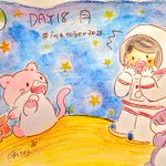 インクトーバー DAY18 月 えっ! ククニャン、月でもおやつ食べてる! ーーーーーーーーーーー アニメ化企画進行中の「ましろちゃんとおやさいレシピ」公式もチェックしてね🎵@oyasaimashiro 🍳 #inktober2021 #inktober #ましろちゃんとおやさいレシピ
