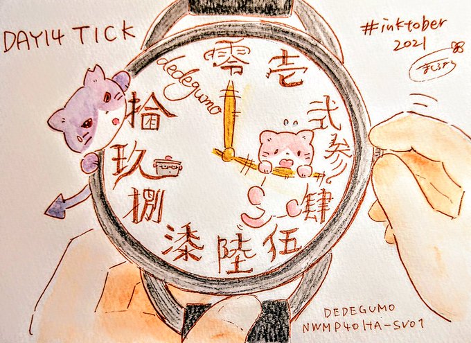 インクトーバー DAY14 TICK(ダニ) 英語版のお題「TICK」から、時計がチクタク動く様子を描きました⌚🌟 ーーーーーーーーーーー アニメ化企画進行中の「ましろちゃんとおやさいレシピ」公式もチェックしてね🎵@oyasaimashiro 🍳 #inktober2021 #inktober #ましろちゃんとおやさいレシピ