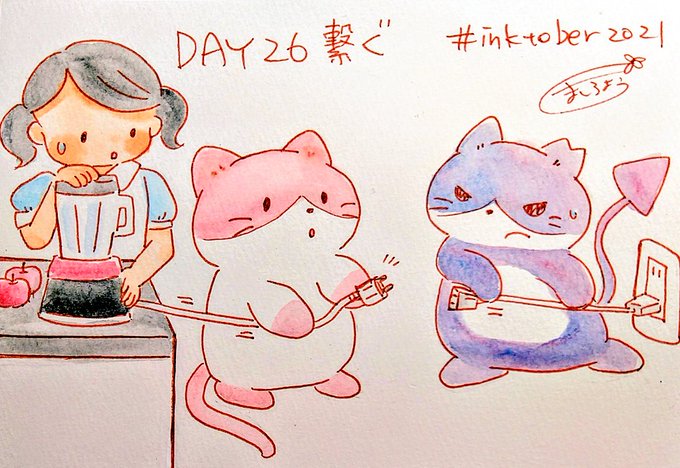 インクトーバー DAY26 繫ぐ ミキサーの電源コードが短い…! もうちょっとひっぱれば届くかも…🔌💦 ーーーーーーーーーーー アニメ化企画進行中の「ましろちゃんとおやさいレシピ」公式もチェックしてね🎵@oyasaimashiro 🍳 #inktober2021 #inktober #ましろちゃんとおやさいレシピ