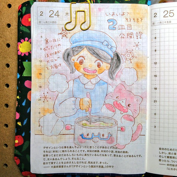 2/24のほぼ日 YouTubeアニメ「ましろちゃんとおやさいレシピ」いよいよ?そろそろ?2皿目公開予定です🍽️ #ほぼ日手帳 #ほぼ日手帳2022 #ましろようの絵日記 #ましろちゃんとおやさいレシピ