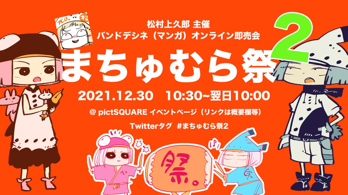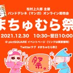 #まちゅむら祭2 を12/30にやります!!↓ pictsquare.net/jn621wp7kp8hwq… ?まちゅむら祭とは? →バンドデシネ、マンガ中心のオンライン即売会です! ・一次創作ならマンガ以外でもなんでもOK ・販売、展示参加どっちもOK ・募集サークル数:100sp ・募集開始:10/2(土)21:00〜 応募は↑