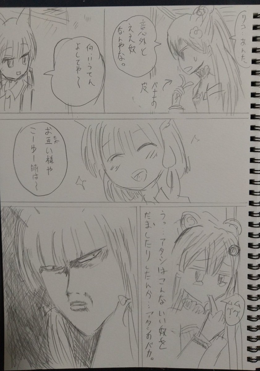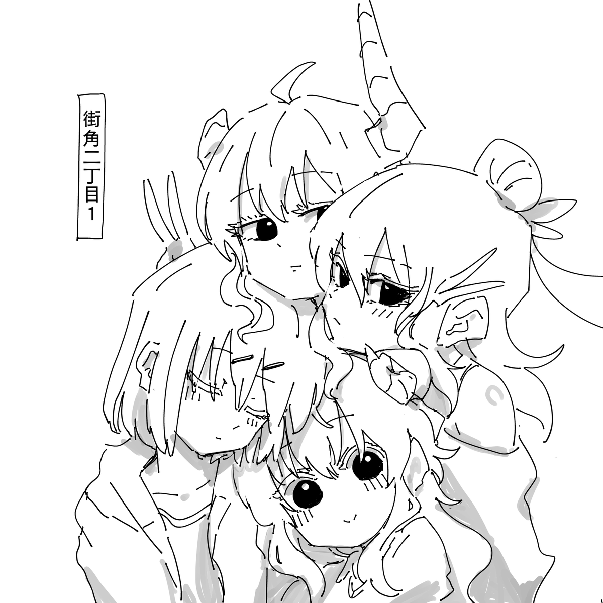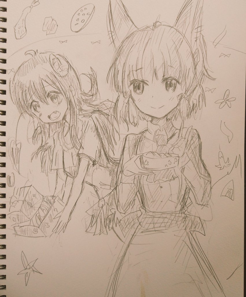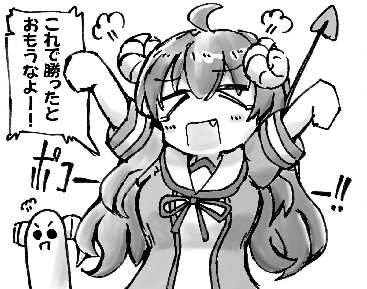 大小のたまさくらちゃんにはさまれて 浮かれフルーツポンチになっている千代田桃を描いたよ。 生活に若干の支障が出る程度に気になる存在 にはさまれれば無表情な桃とてこうもなろう。 #まちカドまぞく #まちカドまぞく二丁目 #1d1d twitter.com/Misp/status/…