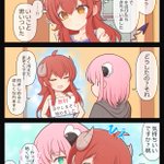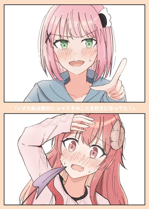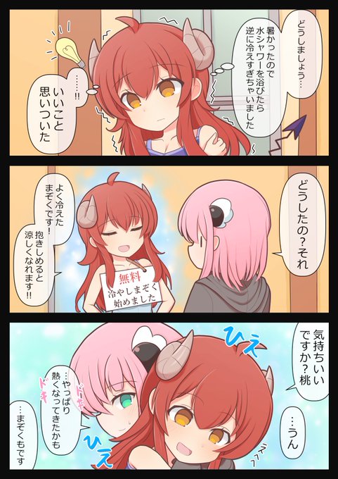 まぞくの魅了攻撃 相手が桃だとありがちだったので、たまさくらちゃんにしました。 なかみは桃かもしれません。 #まちカドまぞく #シャミ子 pixiv.net/artworks/11101…