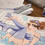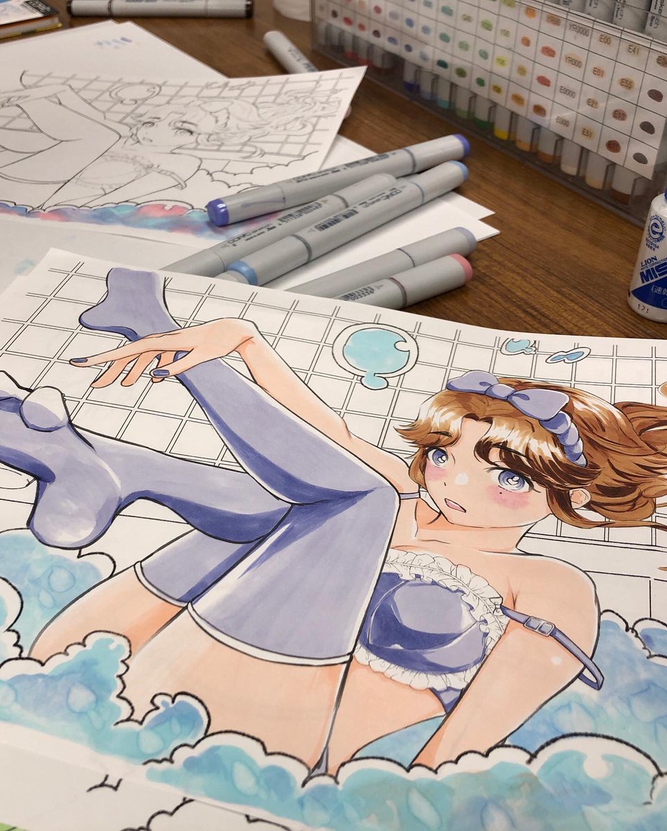 コミックイラスト科 1年生「イラストカラー」授業課題 色紙に コピックで サインを入れて描きました🖼 ・ [4枚目] オープンキャンパス 次回は3/27(日) 全身の描き方をマスターしよう ・ #コミックイラスト科 #コピック #オープンキャンパス #全身の描き方 #まちデ #mdc