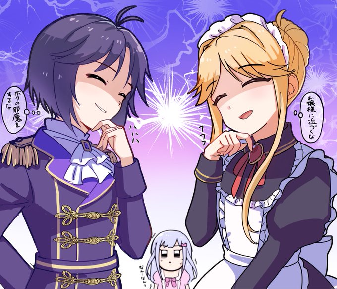 悪役?令嬢の推し配役全員分描けたので再掲 ピュア?令嬢は2パターン描いてみた 令嬢 白石紬 公爵 菊地真 王子 我那覇響 ピュア?令嬢 矢吹可奈 侍女 天空橋朋花 #まっこー爵 #つむフラグしかない悪役令嬢 #パンがなければ15段パンケーキを食べればいいじゃない #家聖母は見た #響王子のNextWife
