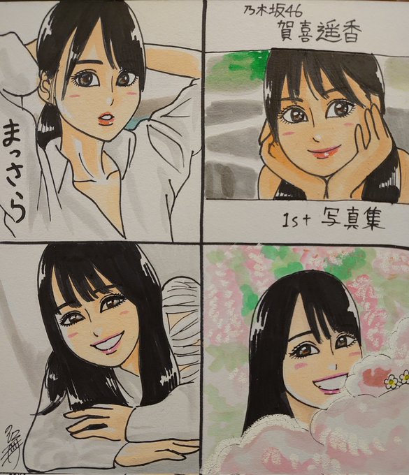 ドン! 今日描いた乃木坂ちゃんで〜す(*^^*) かっきー写真集全表紙(*^^*) #似顔絵 #乃木坂46 #賀喜遥香 #賀喜遥香1st写真集 #まっさら #乃木坂46好きな人と繋がりたい #乃木坂イラスト