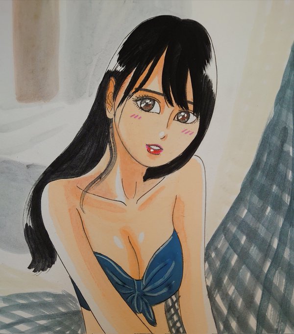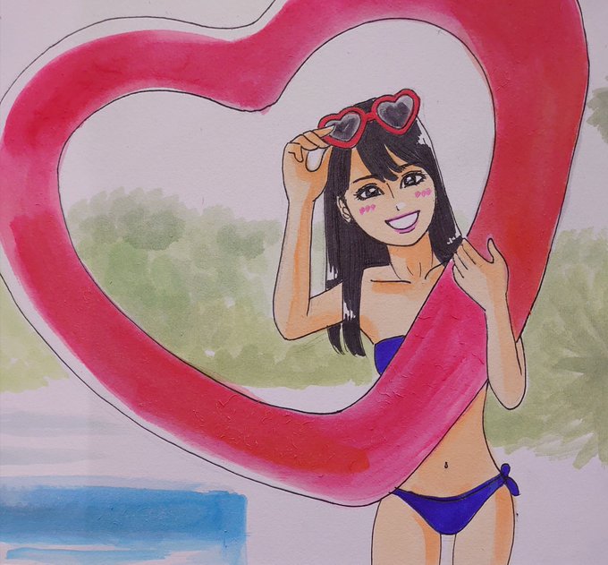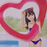 ドン! 今日描いた乃木坂ちゃんで〜す(*^^*) かっきー写真集先行カットより👙❤ #似顔絵 #乃木坂46 #賀喜遥香 #賀喜遥香1st写真集 #まっさら #乃木坂46好きな人と繋がりたい #乃木坂イラスト