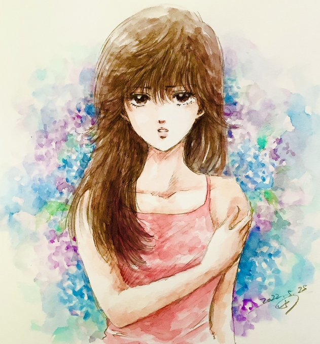 今日は彼女の誕生日だそうなので。 そろそろ紫陽花の季節かなぁと思って、今朝の家事初動が終わってから描きました。 おめでとうございます🎉 #鮎川まどか生誕祭2022 #鶴ひろみ #きまぐれオレンジロード #まつもと泉 #高田明美