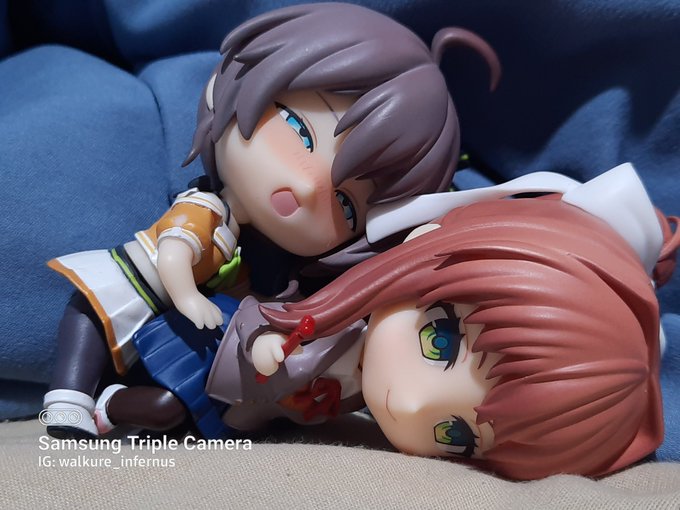 Natsuiro Matsuri and Monika are having fun in bed. Now the real question is, who is receiving the most pleasure? #まつりは絵っち #Monika #Nendoroid
