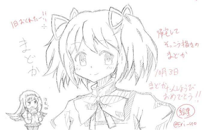 本日の落書きは予告した通りまどか誕生日祝いです、一日遅れたけど(^^;) 帰宅してアニメ見たりしてついさっき描きました まどか誕生日おめでとう!! #落書き #まどか生誕祭 #魔法少女まどかマギカ