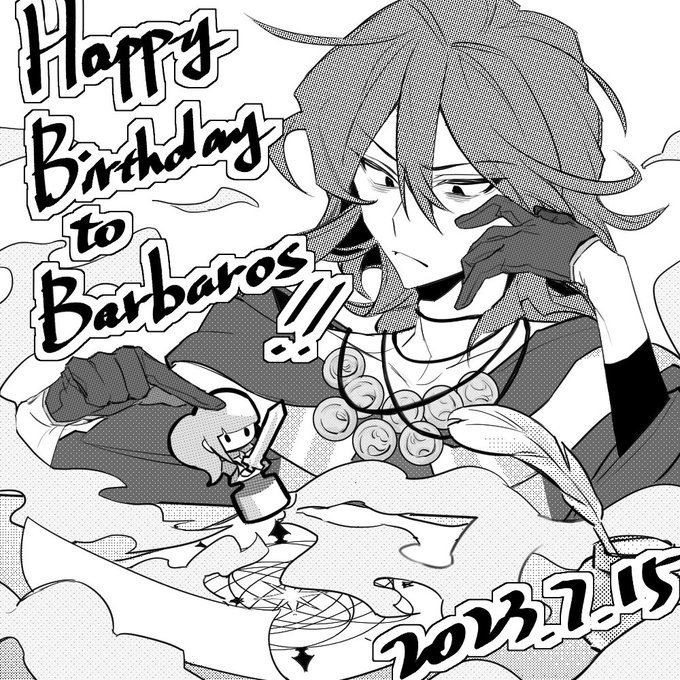 本日7/15はバルバロスのお誕生日! 🎉おめでとう🎉 いつか本編でもシャスティルにお祝いしてもらえるといいね……と願いながらバースデーケーキをプレゼントです🥳🎊 #まどめファンアート #バルバロス誕生日祭