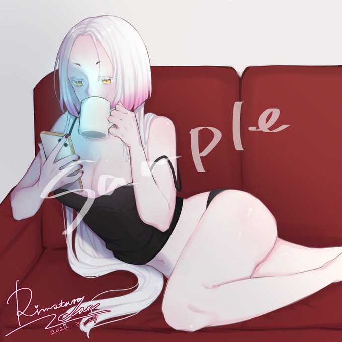 💗skebのご依頼絵💗 キャミ姿でコーヒーを飲みながらスマホをみるまどろみ姉さんというリクエストでした! ありがとうございました✌️ #illustration #drawing #FANART #まどろみ姉さん #Vtuber #Skeb #Commission