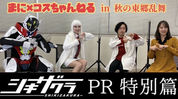 #まにコスちゃんねる 初のゲスト回は… #秋の東郷乱舞 さんにて、中京テレビさんで放送中のアニメ #シキザクラ さんとコラボ‼️✨Σ(((=ω=;; 🌸声優:三輪翔役 野田雄大さん 🌸声優:明神逢花役 茉白実歩さん 🌸シキザクラ造形コスプレイヤー ファラスさん アニメとともに、乞うご期待✨‼️