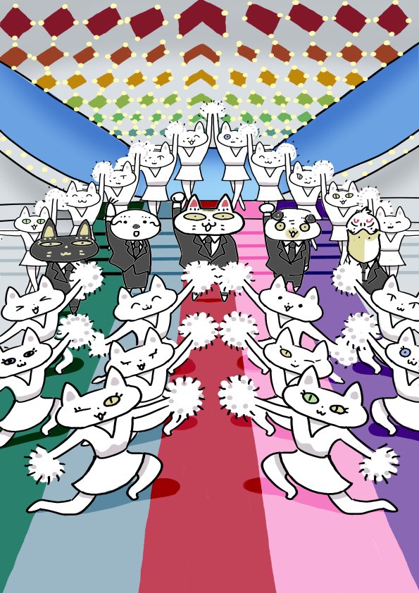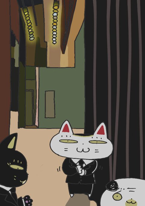「何でイブにスーツなのよ」 「バステトには日本流のクリスマスを教えてやるにゃ」 「そろそろ本番にゃ。揃ったところではじめるにゃ」 #どこかの誰かに刺さればそれで良い #イラスト #猫 #ねこ #招き猫 #まねきねこ #まねきねこちゃあん