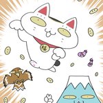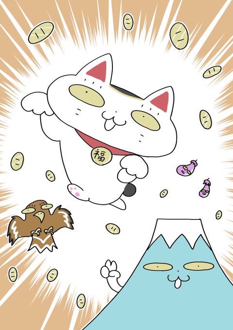 にゃーのふぉろわーと、ふぉろわーじゃないみんなに福を分けるにゃ! みんなに福あれ〜💰♥😺🗻🍆🦅 #どこかの誰かに刺さればそれで良い #イラスト #猫 #ねこ #招き猫 #まねきねこ #まねきねこちゃあん #絵描きさんとつながりたい