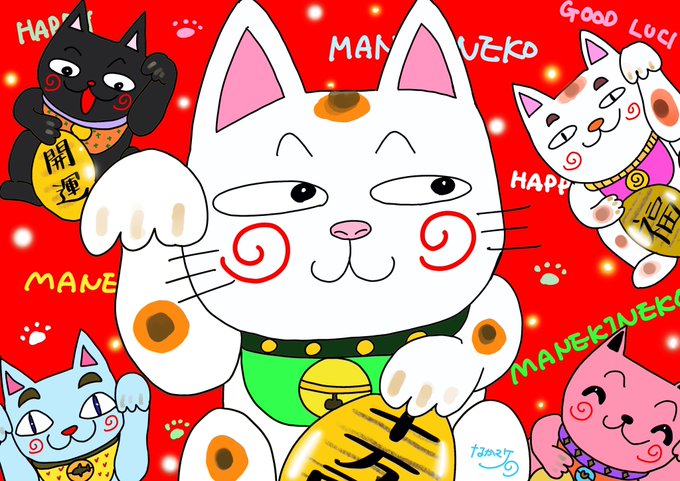 おはようございます☀️ 招き猫★皆さんにいっぱい福がまいこんで来ますように🤗 てか、やっぱり猫って上手く描けない😅 寒いけど頑張りましょー★ #まねきねこ #イラスト #みんなで楽しむTwitter展覧会
