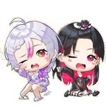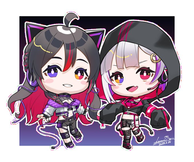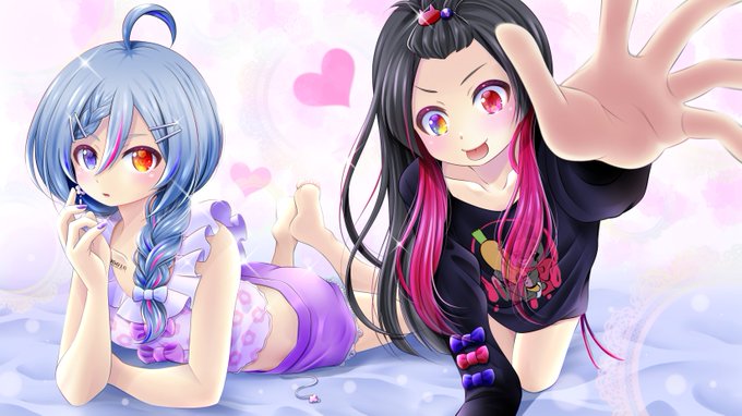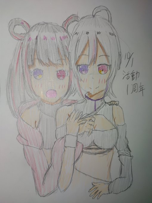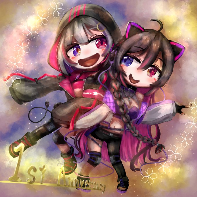 今日は超絶歌うまVユニット「AbyssDIVA」デビュー1周年記念🎉 お祝いだし、ちょっとだけ羽目を外して衣装交換してみました🐱 #AbyssDIVA #るきArt #まぴくちゃ #イラスト #Vtuber好きさんと繋がりたい