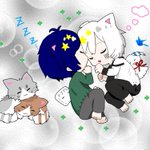 「幸せってさ 僕もわからないんだ おうちへ帰ろう?」「ただいま」 青い子が隣で寝ていますが、ユニットがあったからこそ復帰の未来があったのです!! #まふあーと #そらるの絵 #まふまふさんおかえりなさい