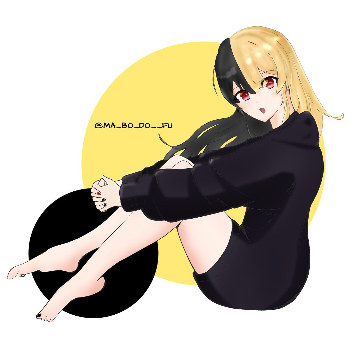 🖤#まぼ絵365日チャレンジ💛 109日目:白パーカーまぼ(タップ推奨) 手の立体感とと服のシワにこだわってみた。これでスマホと板タブでのイラスト作成は卒業😌 これからはPCと液タブ使います💪 #まぼ絵 #イラスト
