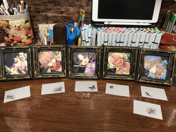 やっと…作品全部完成した…あとはキャプションやらグッズやら細々したものの準備だ〜! 展示/「欠けた月は徒花を喰む」 場所/大阪 ぎゃらりぃあと様 2階奥の部屋 期間/9月22日〜27日 12:00〜20:00(最終日18:00) #欠けた月は徒花を喰む #ままならない創作 #コピック #ぎゃらりぃあと twitter.com/iti2sam/stat…