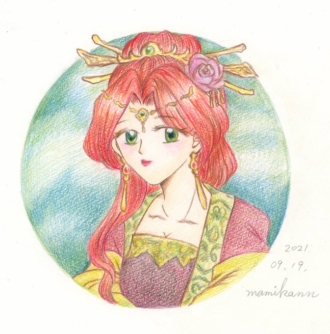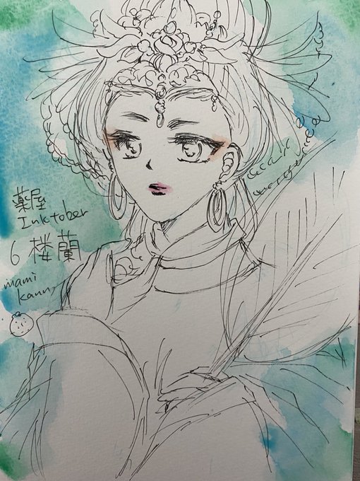 #薬屋Inktober #薬屋FA #まみかんの薬屋FA 楼蘭妃 楼蘭という国が昔本当にあり さまよえる湖の話が とっても好きなんですよね ロマサガ2の移動湖はこれが元かと そんなわけで楼蘭妃も 名前からして無条件で 好きなキャラです✨ 化粧が濃いめに見えますかね?