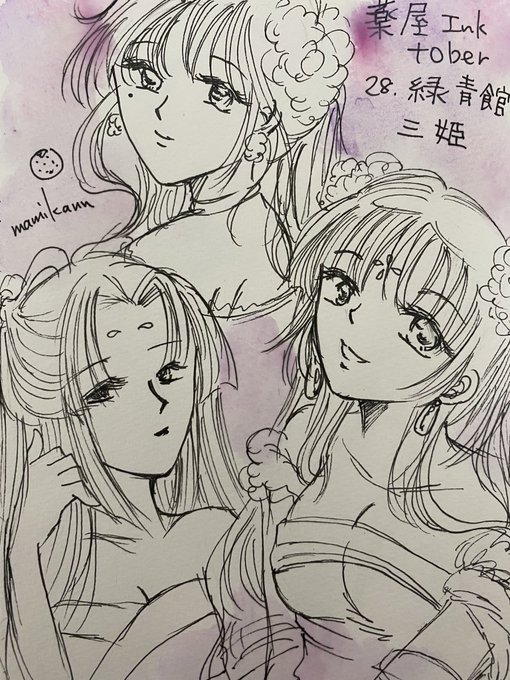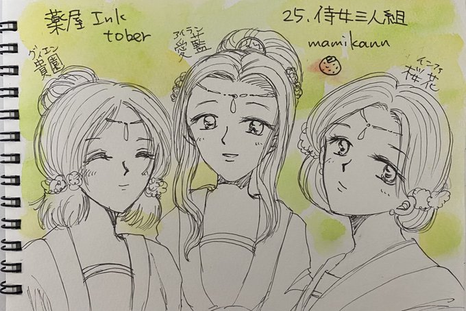 #薬屋Inktober #薬屋FA #まみかんの薬屋FA 緑青館 三姫 意外に三姫の見た目がわからず 探しまくって時間かかりました🤣 女華姐ちゃんの挿絵探しまくった ないのでねこくらげ先生の 漫画を参考に致しました