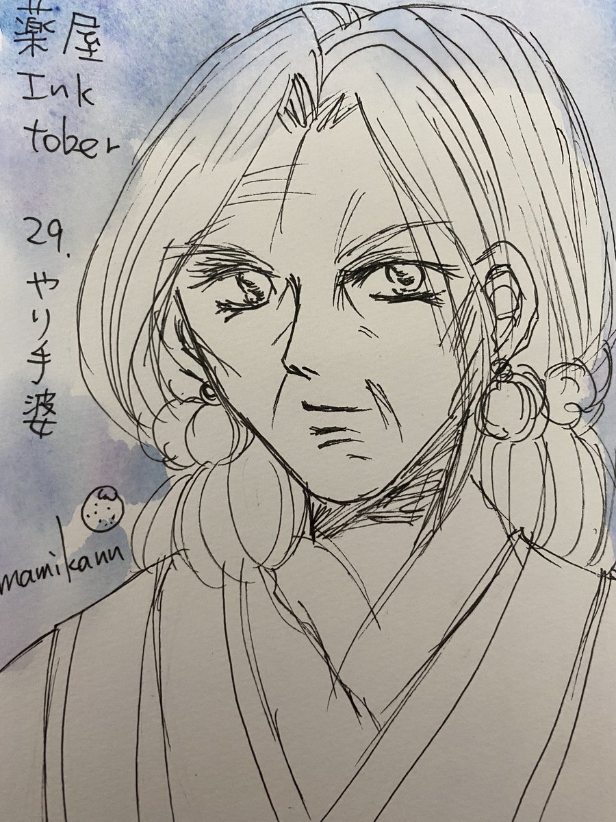 #薬屋Inktober #まみかんの薬屋FA #薬屋FA やり手婆 元月の精🌙✨ 何気にカッコいいよね、ババ✨ 女性がなかなか社会の上に いけないって状況で 店を切り盛りしていくには 商才はもちろん、ある程度 アコギだったりケチだったり ずるさも必要なんだろうなと思うと なんかにくめないのでした✨