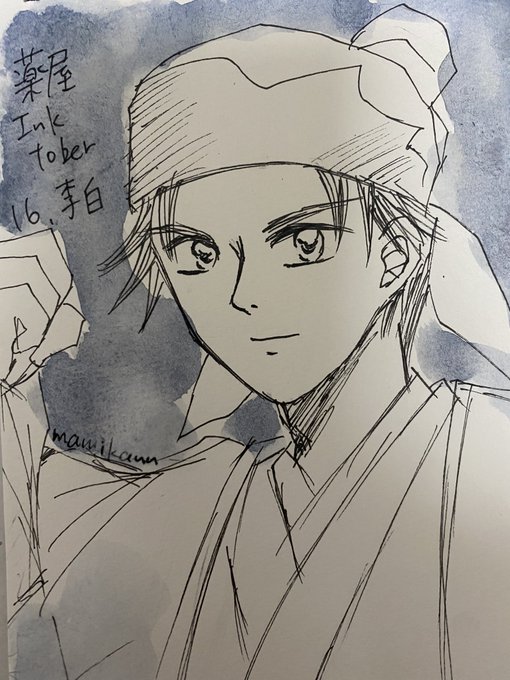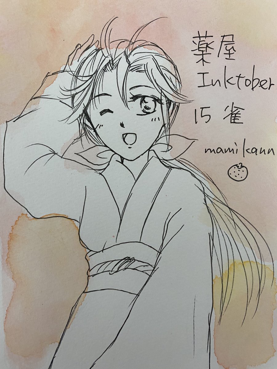#薬屋FA #まみかんの薬屋FA これもインクトーバーのスケブに 描いてたやつ マルマンにサクラマット水彩 ちょっとじんまおの2人が 外に出たら 薬草摘んでいいですか? 本当にお前は薬のことしか 頭にないな‼️‼️ みたいな感じです🥳