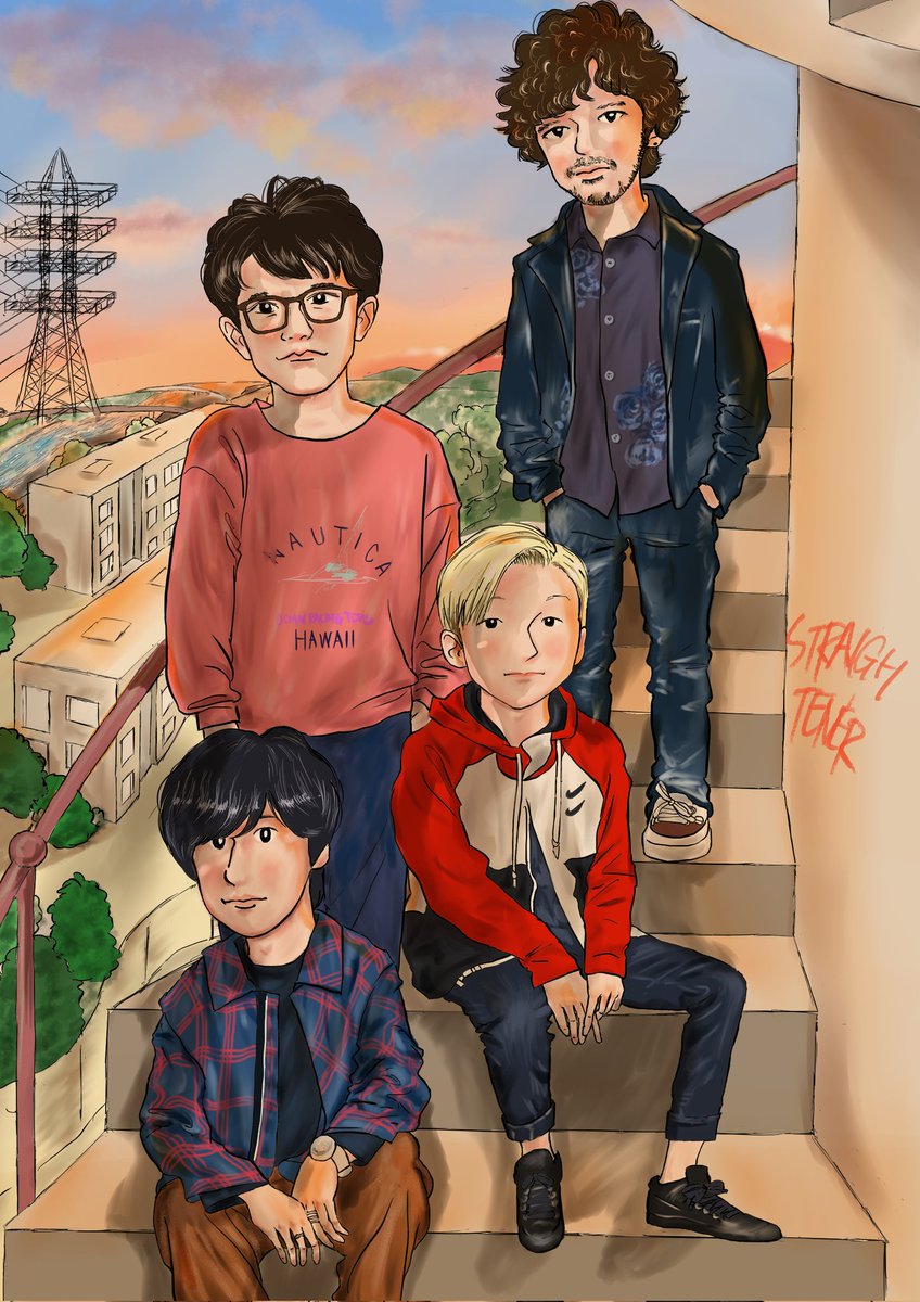ストレイテナーアー写企画第4弾。 2022年のストレイテナー。 Graffiti発売時のアー写を模写✑✒ 待ち受けサイズはリプ欄へ。 今回待ち受けサイズの出来がよいのでぜひ見てほしいです♪ instagram.com/p/CfWS85mvRzS/… #ストレイテナー #イラスト #まみへいアー写企画