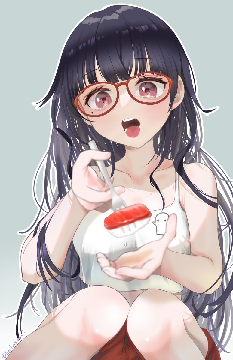 「おしゅしたべなよ」 言訳まみれ( #excusemamire )ちゃんのFAできたーーーーーー!!! ケーキの如くお寿司をたべさせてくれるまみれちゃんです😊 #まみれるイラスト #ぶれいくはあーと #絵柄が好みっていう人にフォローされたい