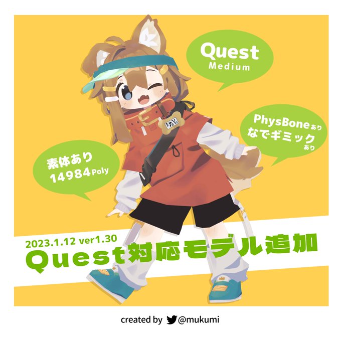 ⸜まめひなたver1.30 更新しました!⸝ 🐶🎉Quest対応モデルを追加しました!🐶🎉 PC版モデルも、"ほっぺ大"と干渉していた各BlendShapeの修正などを行いました。 詳細は販売ページ最下の更新履歴をご確認ください。 mukumi.booth.pm/items/4340548 #もち山金魚 #まめひなた #Mamehinata