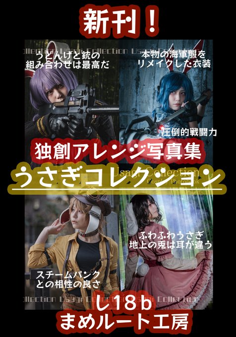 【新刊のお知らせ】 5/7 例大祭20 新刊「うさぎコレクション」B5/48Pを頒布します!🐰 今回も私達らしいアレンジを詰め込んだ素敵な写真集が出来ました。 中綴じ本で見開き写真の迫力がすごい!!✨ し18bまめルート工房で実物をご覧になってくださいね!🐰✨ #例大祭20 #まめルート工房 twitter.com/i/web/status/1…