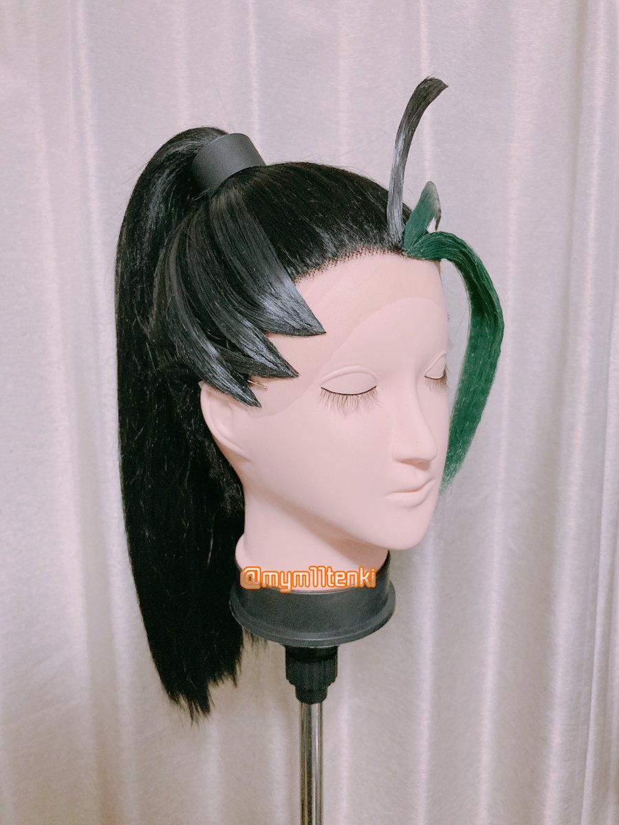 #まゆめズラ工房 RKRN//忍たま 久々知兵助 ウィッグ 彼の独特な結い上げ髪のかたちと毛量をどう表現するか悩んだ末、ふかしを入れた状態からランダムにカールを入れてセットしてみました。 本物の忍具の通り、回るギミックを採用した寸鉄も製作完了。 手作りです! #WigTutorial #WigCosplay