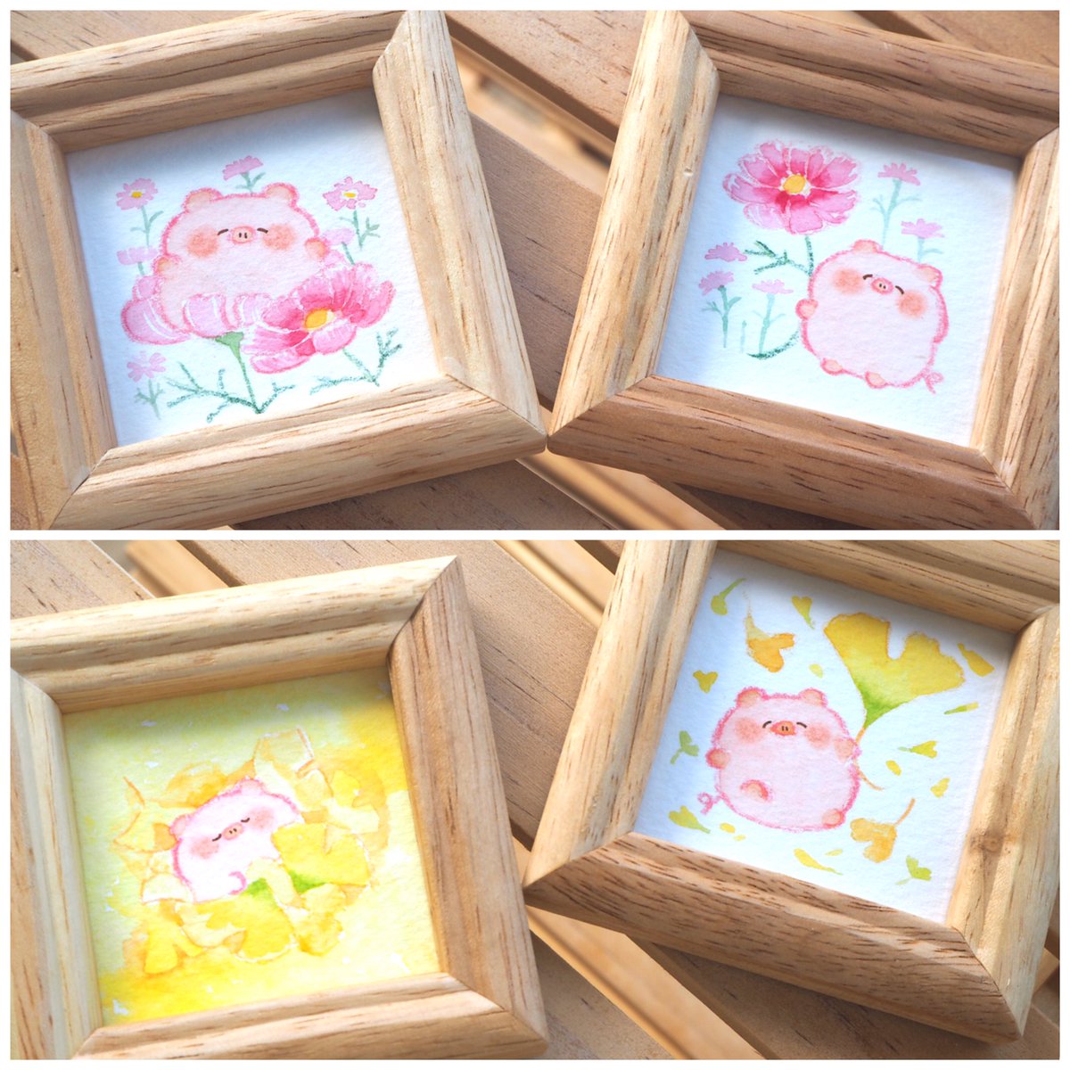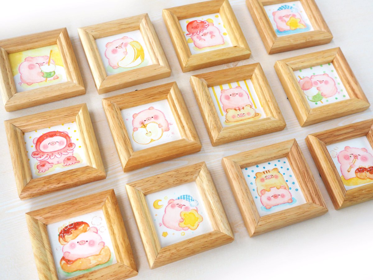 #まるっこい展2021秋 にならべていただいたミニ原画たちです🖼いつもと描きかたを変えてみたりして今回もたのしく描かせてもらいました。 ミニ原画は完売ですが会場にはまだかわいいグッズがたくさんありますのでせひ🌟՞•Ꙫ• ՞