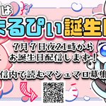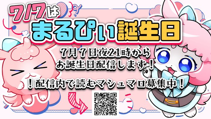 7月7日はまるぴぃHAPPYBIRTHDAY🎉 配信内で読むマシュマロ募集中だよ!✨ お祝い、応援、質問何でも気軽に送ってね!🐾 マロ:marshmallow-qa.com/marupi_marupip… #まるぴぃ飼育日記 のタグを付けてくれたお祝いイラストも配信中に紹介します!✨ 当日はお祝いだけでも言ってもらえたらとってもハッピー🎉🎉