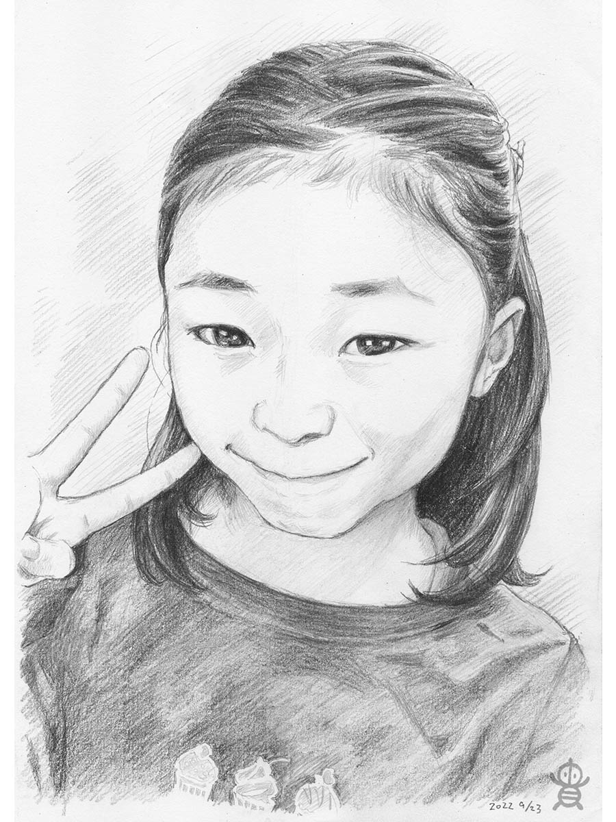 まんなかフェス2022でお描きした似顔絵、お客様に許可いただきアップ!✍️😊 ダンスをやってる小学生女子✨ 当日ポニテだったのですが、ご本人からの要望で後ろ髪を下ろしたお写真と合成してお描きしました👍 #似顔絵 #鉛筆画 #絵描きさんと繫がりたい #イラスト好きさんと繋がりたい #まんなかフェス