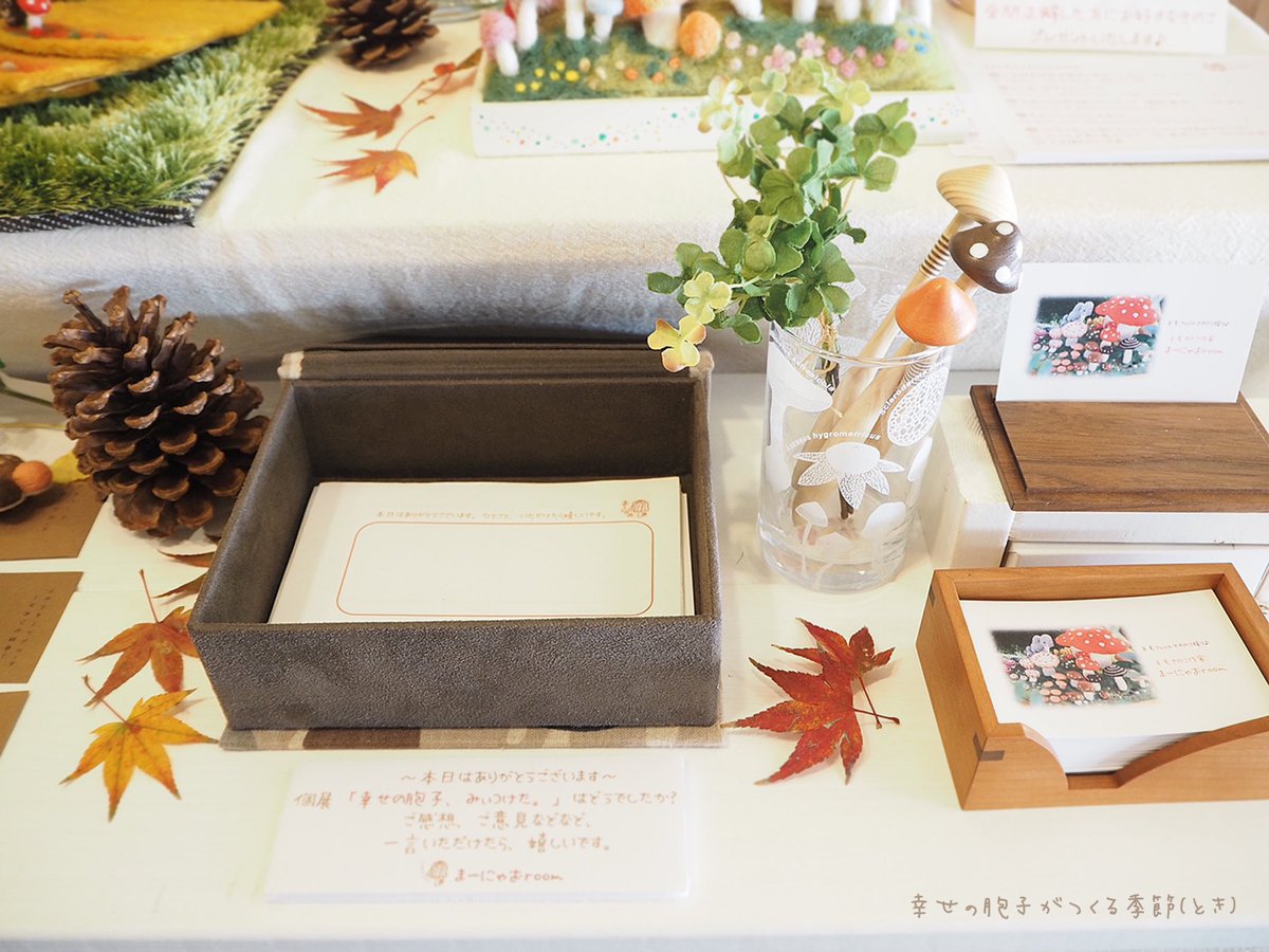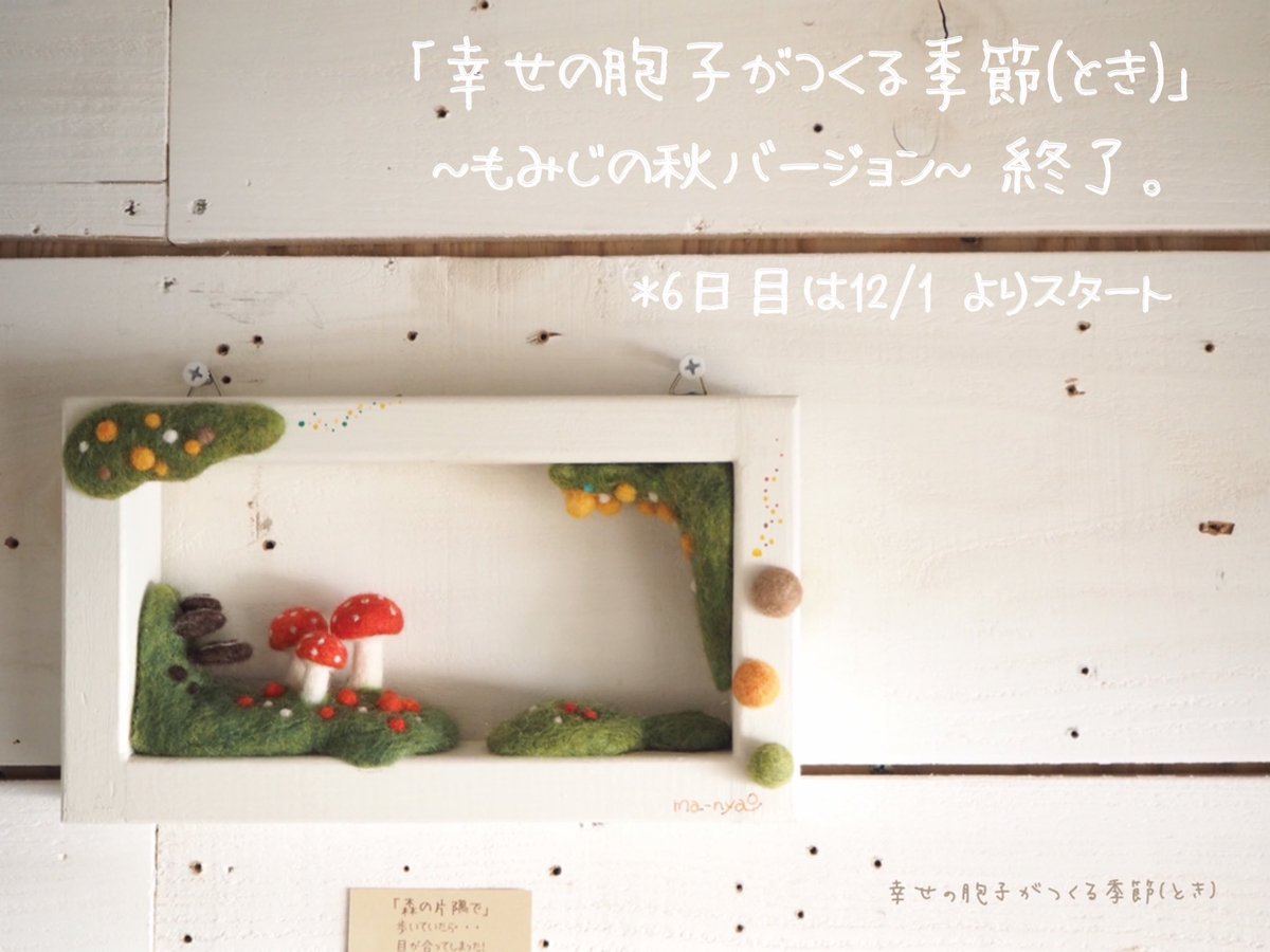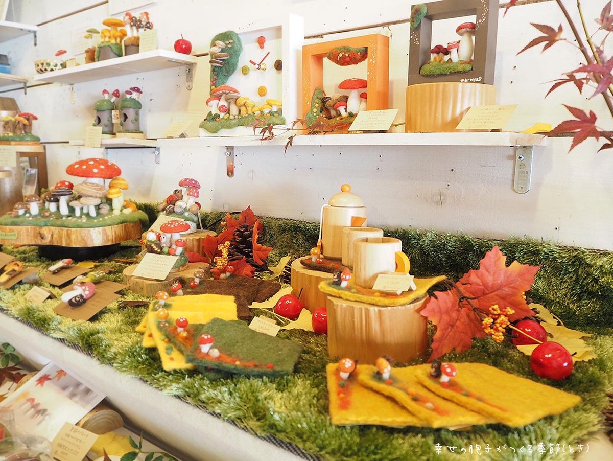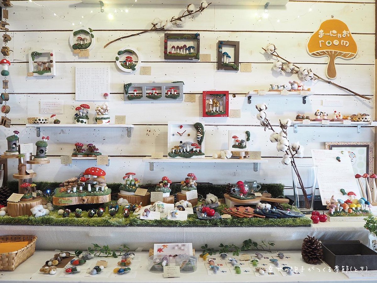 \ もみじの秋から雪ふる冬へ / あっという間の5日間でした。 たくさんの方に楽しんでいただき、 嬉しい限りです♪ お越しくださったみなさま、 本当にありがとうございました。 そして…、 6日目より"雪ふる冬バージョ"へ #羊毛フェルト #きのこ #まーにゃおroom