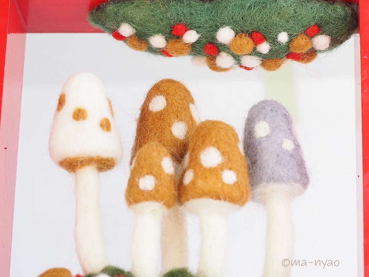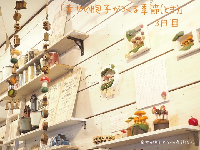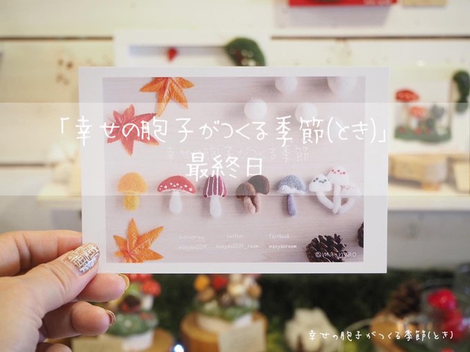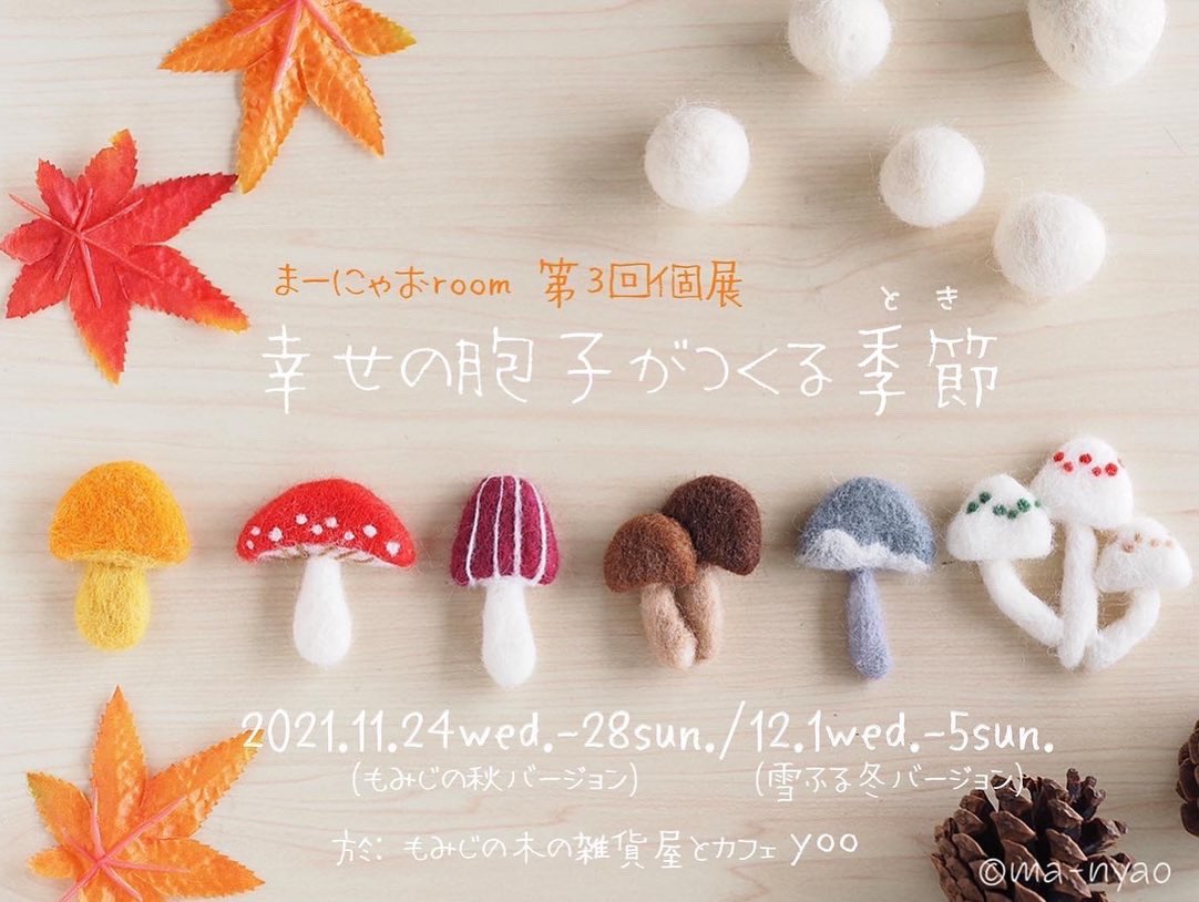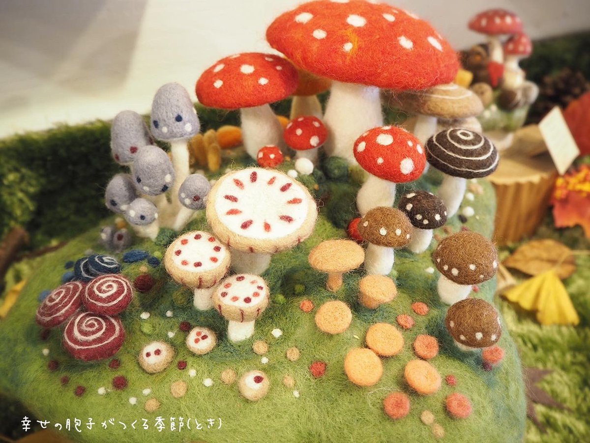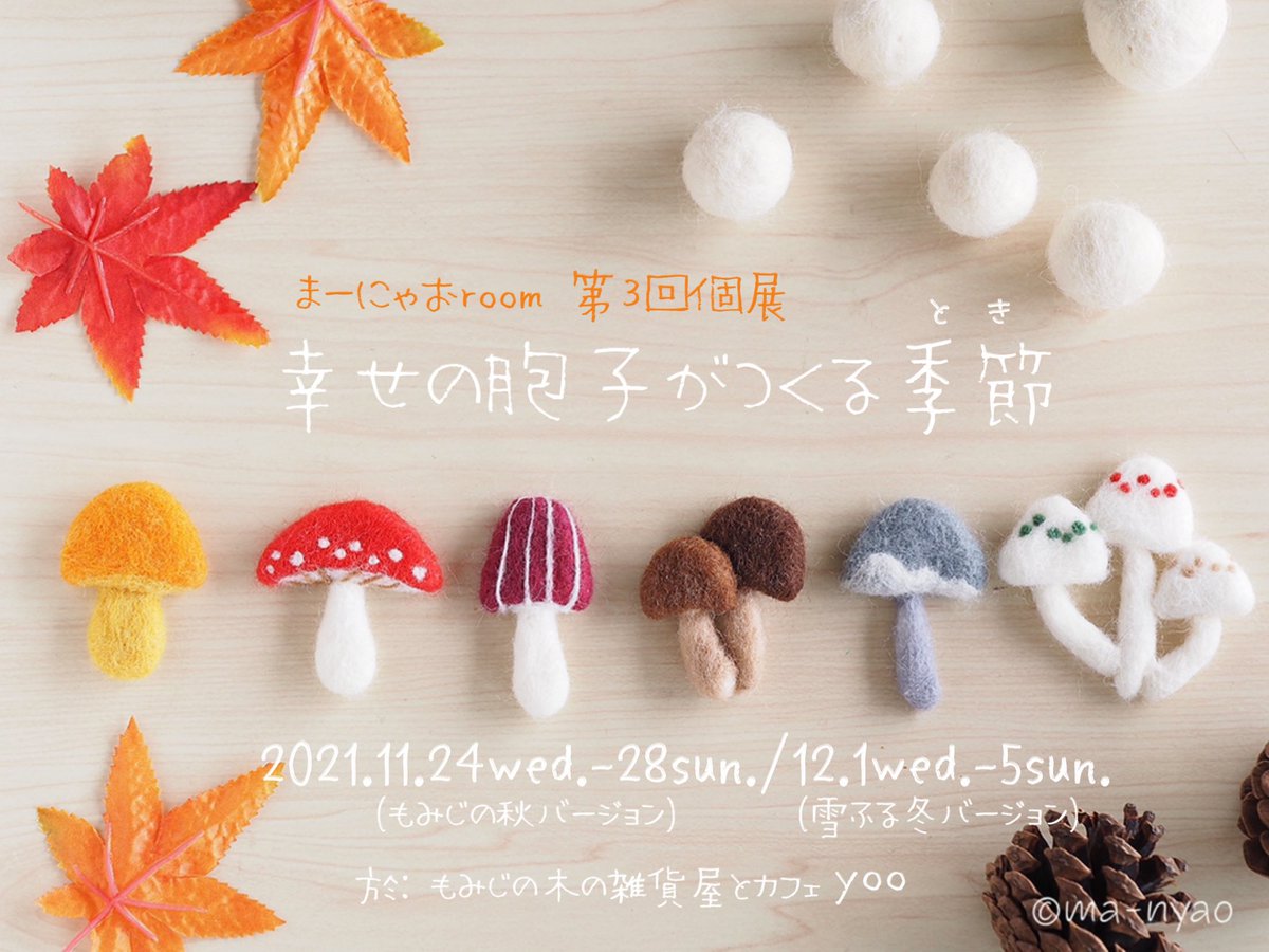 \ もみじの秋から雪ふる冬へ / あっという間の5日間でした。 たくさんの方に楽しんでいただき、 嬉しい限りです♪ お越しくださったみなさま、 本当にありがとうございました。 そして…、 6日目より"雪ふる冬バージョ"へ #羊毛フェルト #きのこ #まーにゃおroom