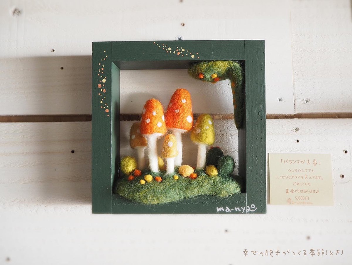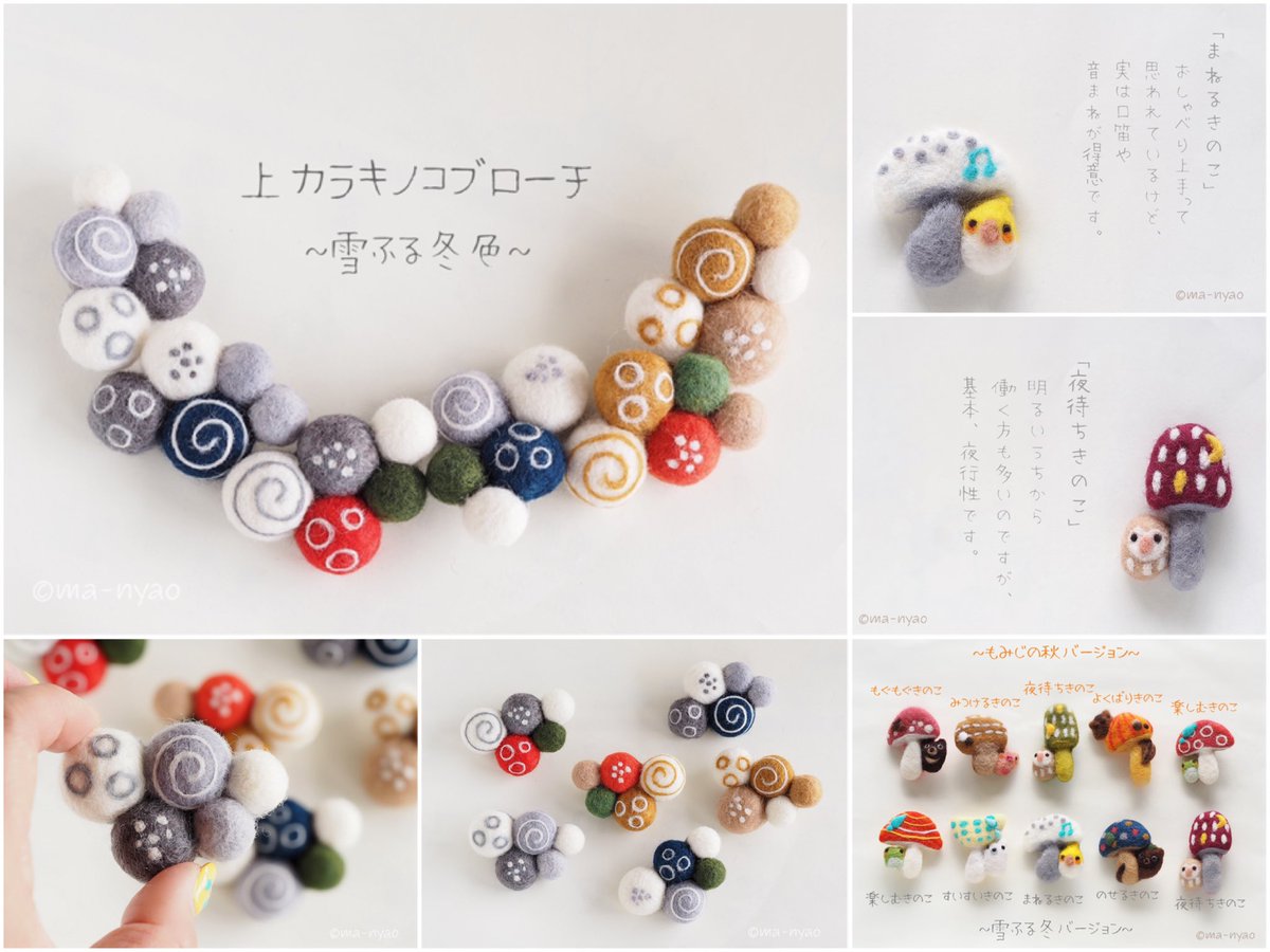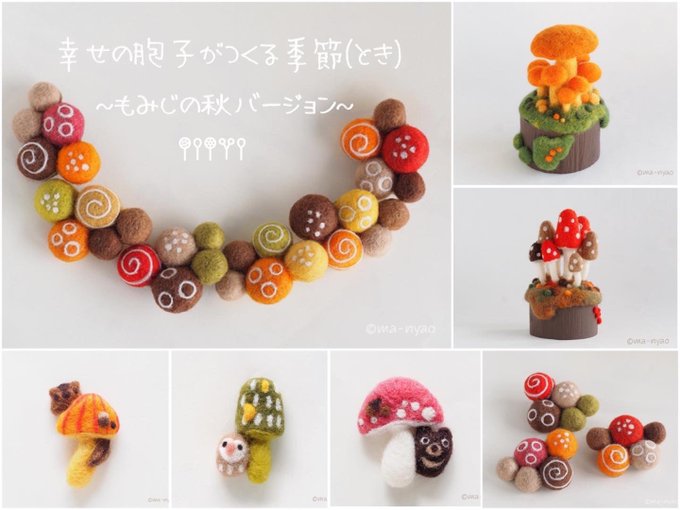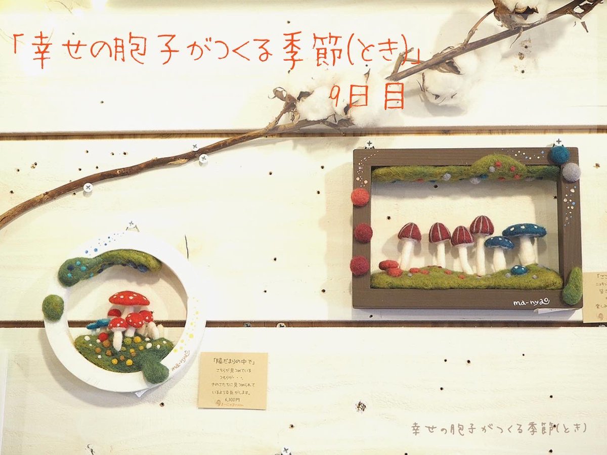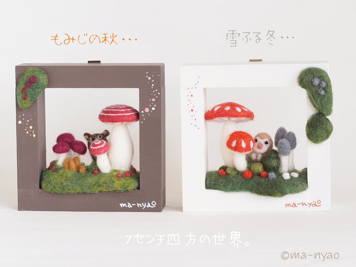 \ もみじの秋から雪ふる冬へ / あっという間の5日間でした。 たくさんの方に楽しんでいただき、 嬉しい限りです♪ お越しくださったみなさま、 本当にありがとうございました。 そして…、 6日目より"雪ふる冬バージョ"へ #羊毛フェルト #きのこ #まーにゃおroom