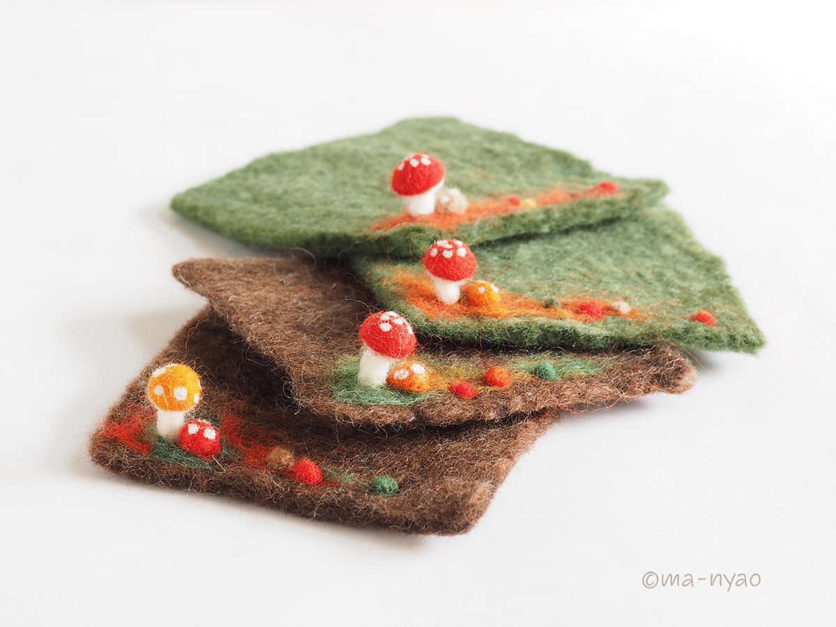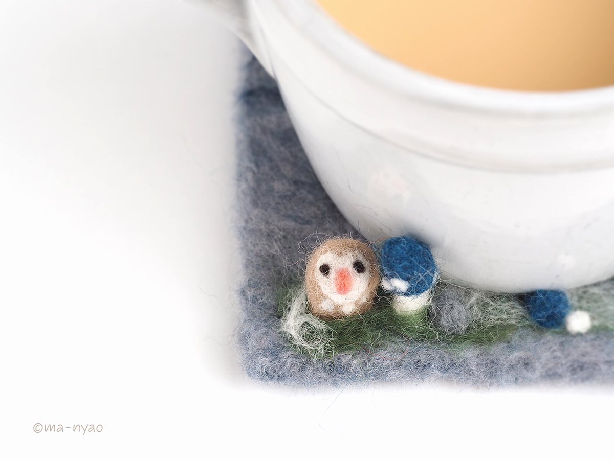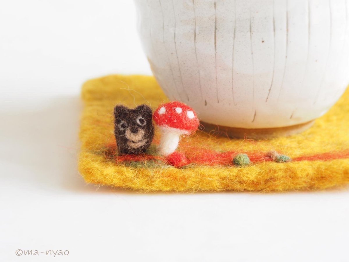 \ 冬の週末です𓏌𓏗𓂂𓏸☃︎ / 「このコは、わたし用に…。」 ふくろうの”きのコースター” 冬の到来を待ってくださり、 本日お迎えいただきました♪ 末永く、よろしくお願いします。 いよいよ。 冬バージョン最終章です。 #羊毛フェルト #きのこ #まーにゃおroom