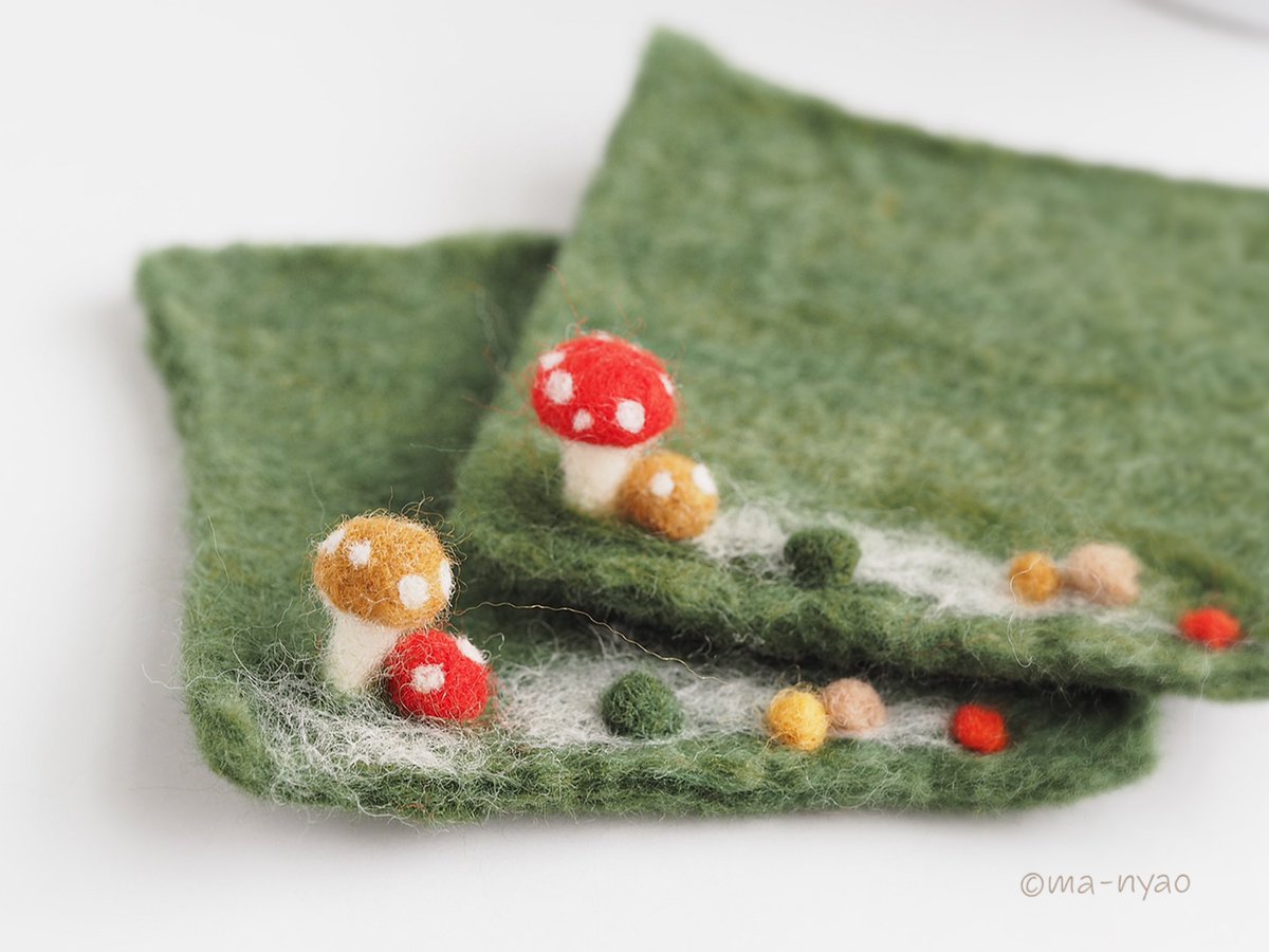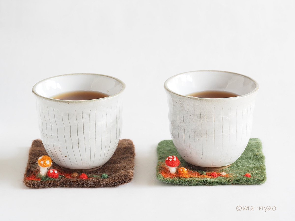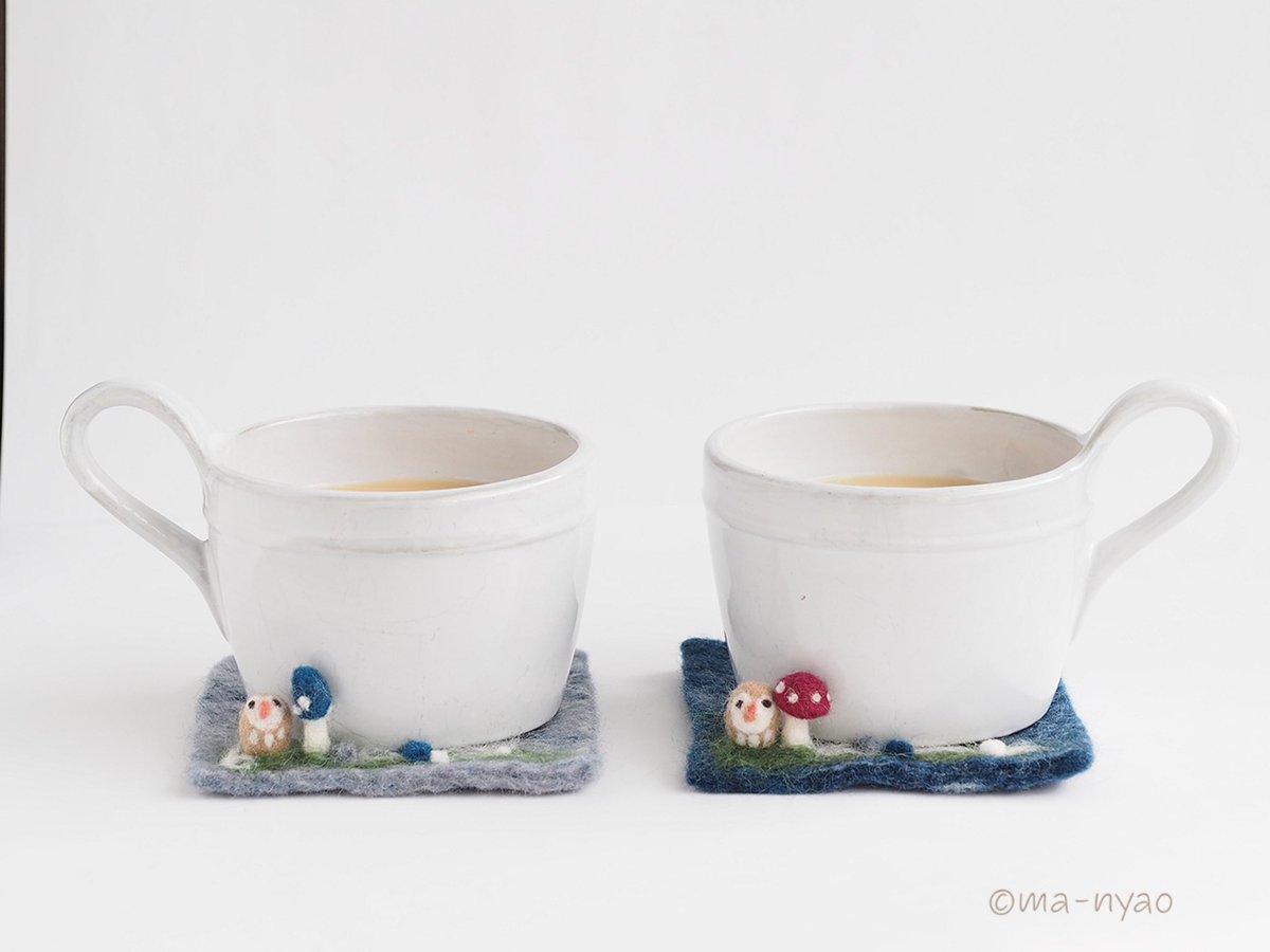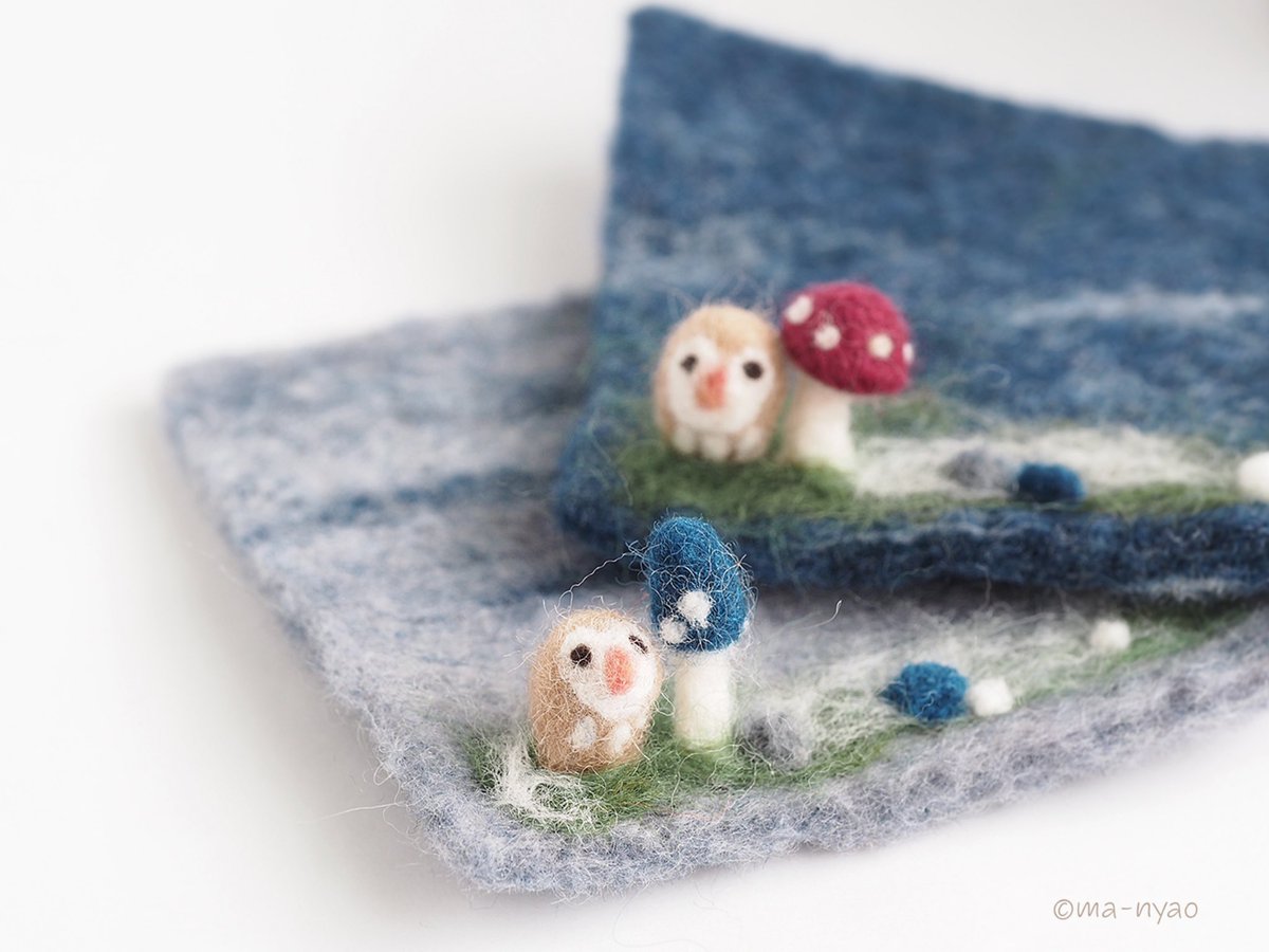 \ 冬の週末です𓏌𓏗𓂂𓏸☃︎ / 「このコは、わたし用に…。」 ふくろうの”きのコースター” 冬の到来を待ってくださり、 本日お迎えいただきました♪ 末永く、よろしくお願いします。 いよいよ。 冬バージョン最終章です。 #羊毛フェルト #きのこ #まーにゃおroom