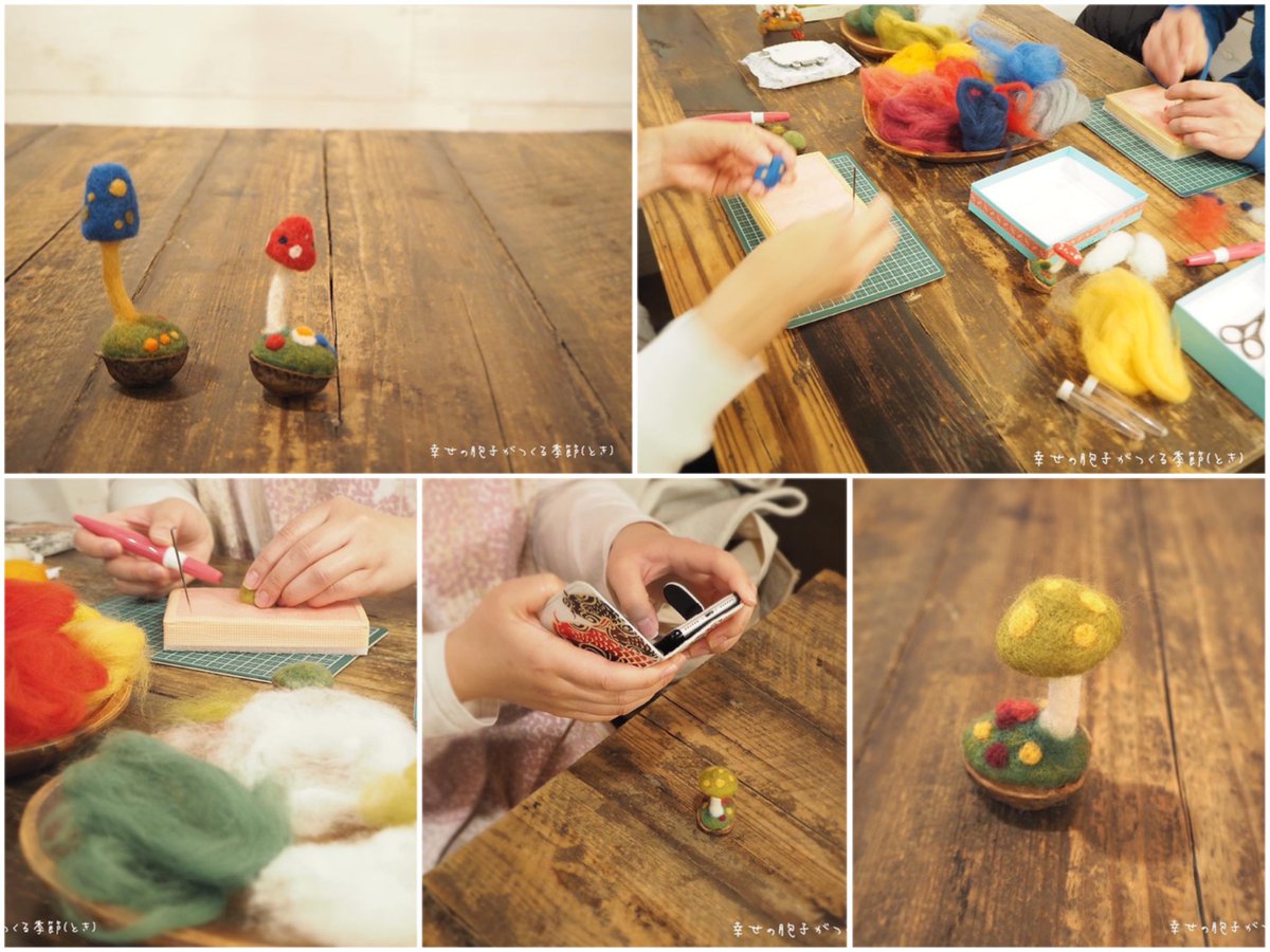 𖥣𖤣𖦥もみじの秋、3日目𖤥𖥣𖥣 たまたま通りかかったきのこ好きさん、 毎回遊びに来てくれるきのこ好きさん。 ワークショップで個性あふれる きのこたちの競演𖤥𖥣𖤣𖥧𖥣 幸せの胞子に包まれる時間を ありがとうございました♪ #羊毛フェルト #きのこ #まーにゃおroom