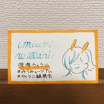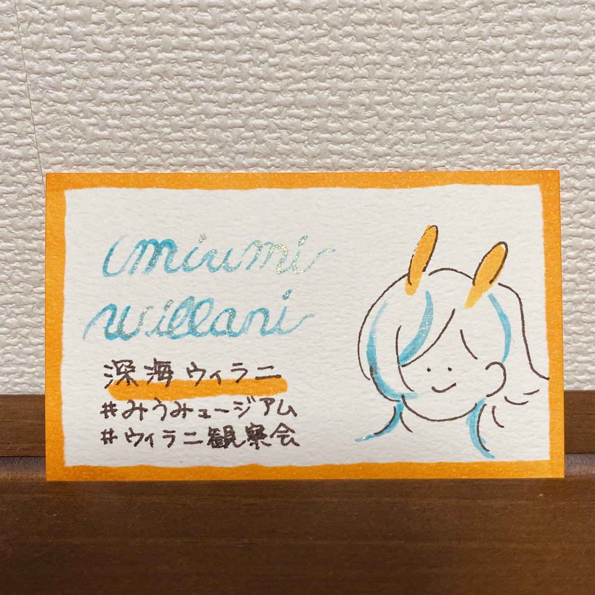 お気に入りのラメインク(琥珀糖/Tono&Lims)がウィラニカラーっぽい〜と思ったのでらくがきしました! 名刺みたいになっちゃったな🤔 金色のラメがキラッキラ✨するので動画も見てやってください! #みうみュージアム twitter.com/i/web/status/1…
