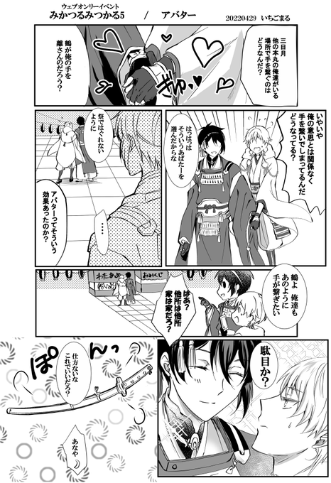 三日月極と鶴丸の㊙ネットプリントです。 絵柄はイベント終了後にツイッターで公開します。 ファミマ・ローソン L判:30円 番号『PEAN75YCDH』期限:24日22時頃・25日17時頃(2枚目) セブン L判:40円 1枚目『HH9YG9HP』期限:23日中 2枚目『7LY3GTLB』期限:24日中 #みかつるみつかる5