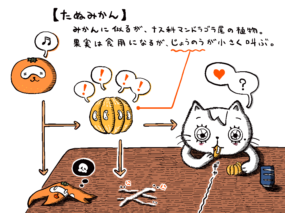 まめさん @mame12633 が描かれたコタツみかんのイラストに インスピレーションを頂いた結果、 変なみかんの解説図ができました… まめさん、かわいいイラストに混ぜて頂いて、 ありがとうございます。 #イラスト #みかん twitter.com/mame12633/st…