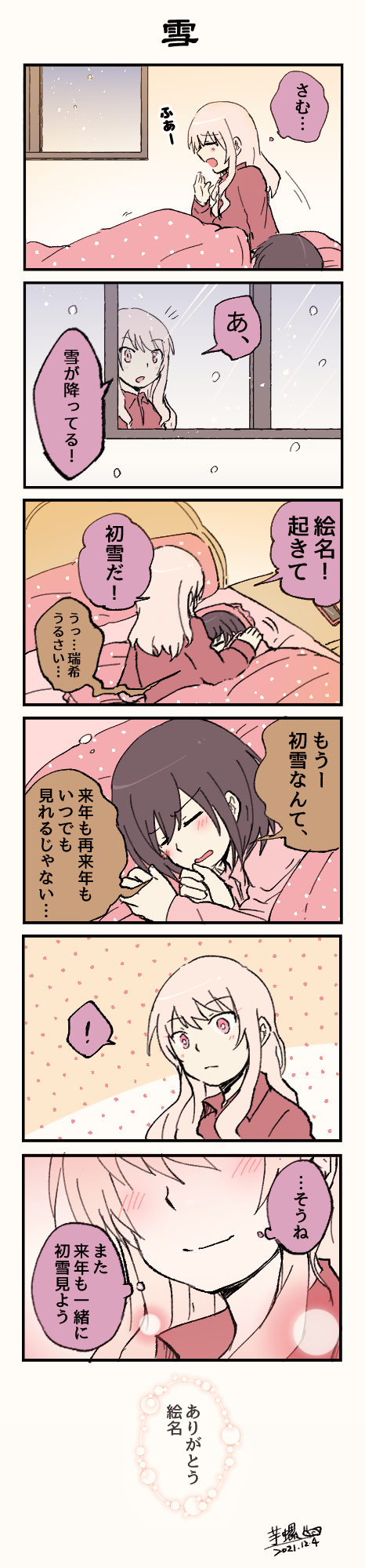 #みずえな25時ワンドロワンライ 1コマ目の部屋で色々妄想しすぎた…ネタ伝わってるとうれしいな…あとネットで調べた商品だけど、本当に健康にいいか分からないです… 結婚済み設定注意 積もる幸せ お題:雪