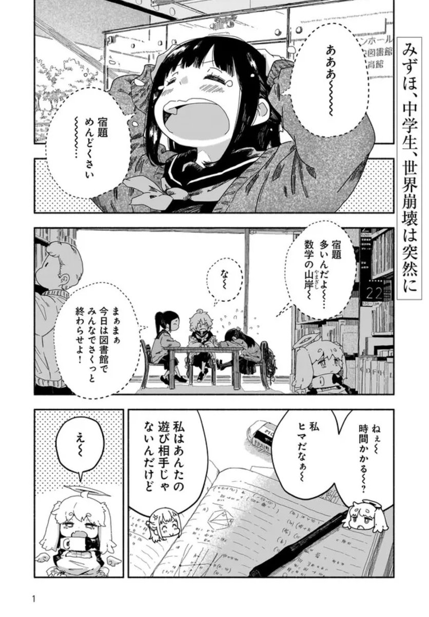 本日2/28より、電撃G'sコミックさんにて連載中 『みずほ、中学生、世界崩壊は突然に』 第7話配信されましたー 今回はお付きのアプカ回!みずほは宿題してます 鯉五郎〜… #みずほ崩壊 ComicWalker→comic-walker.com/contents/detai… ニコニコ静画→seiga.nicovideo.jp/comic/60010
