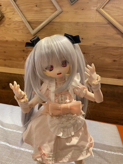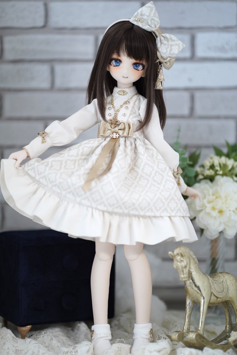 月曜日おつかれ様です☺️✨ メンテ明けねいこちゃんにアイドールでご縁頂いたラトナ様の天使のワンピース&みそのくに様の羽靴下を着てもらいました〜💕明日も頑張れる😤💪✨ #jewelmagic服 #みそのくに #mddはいいぞ