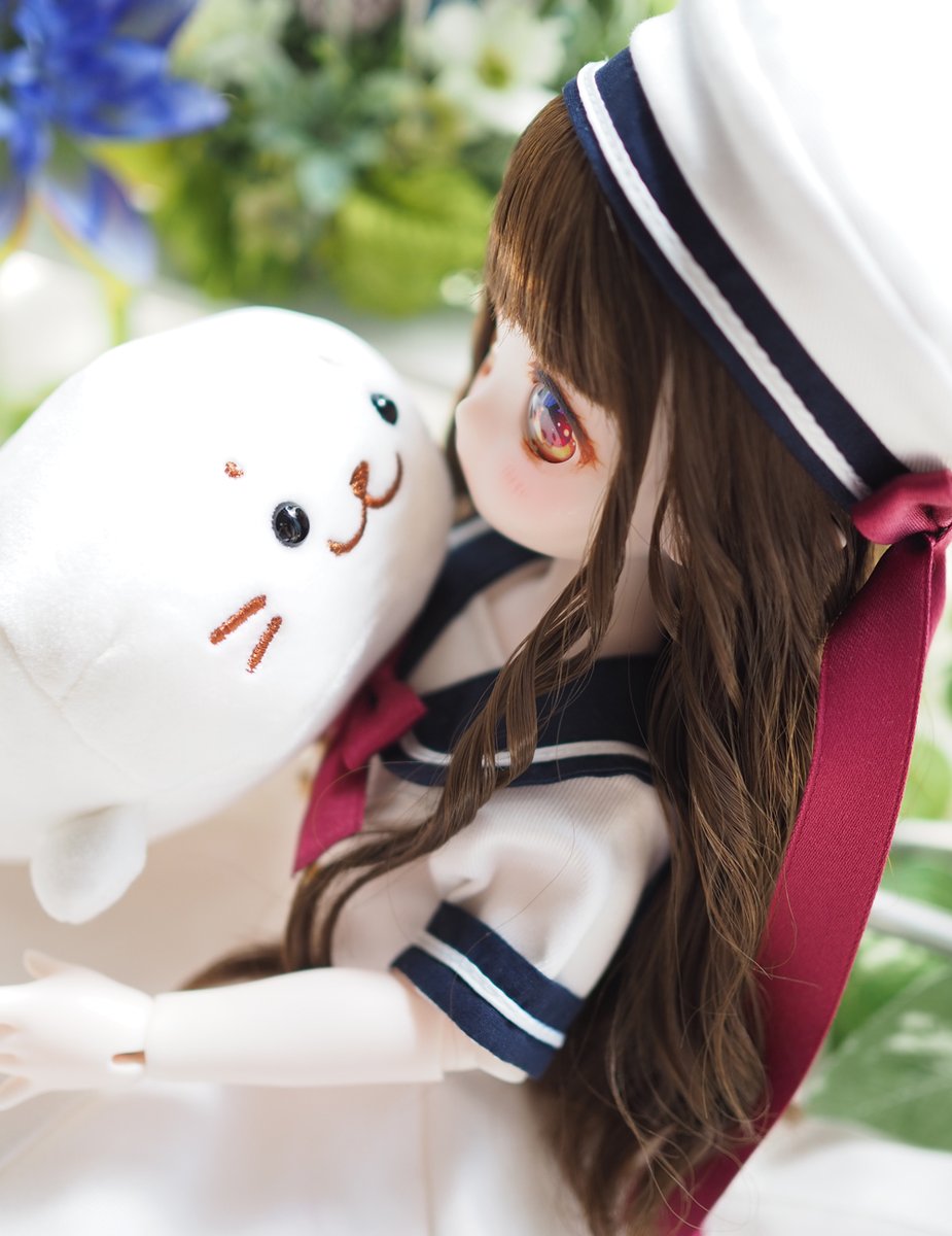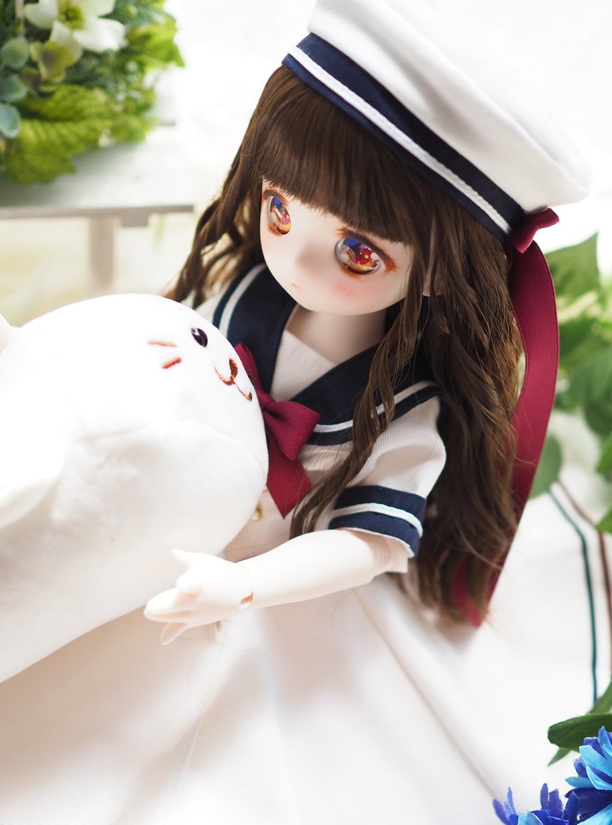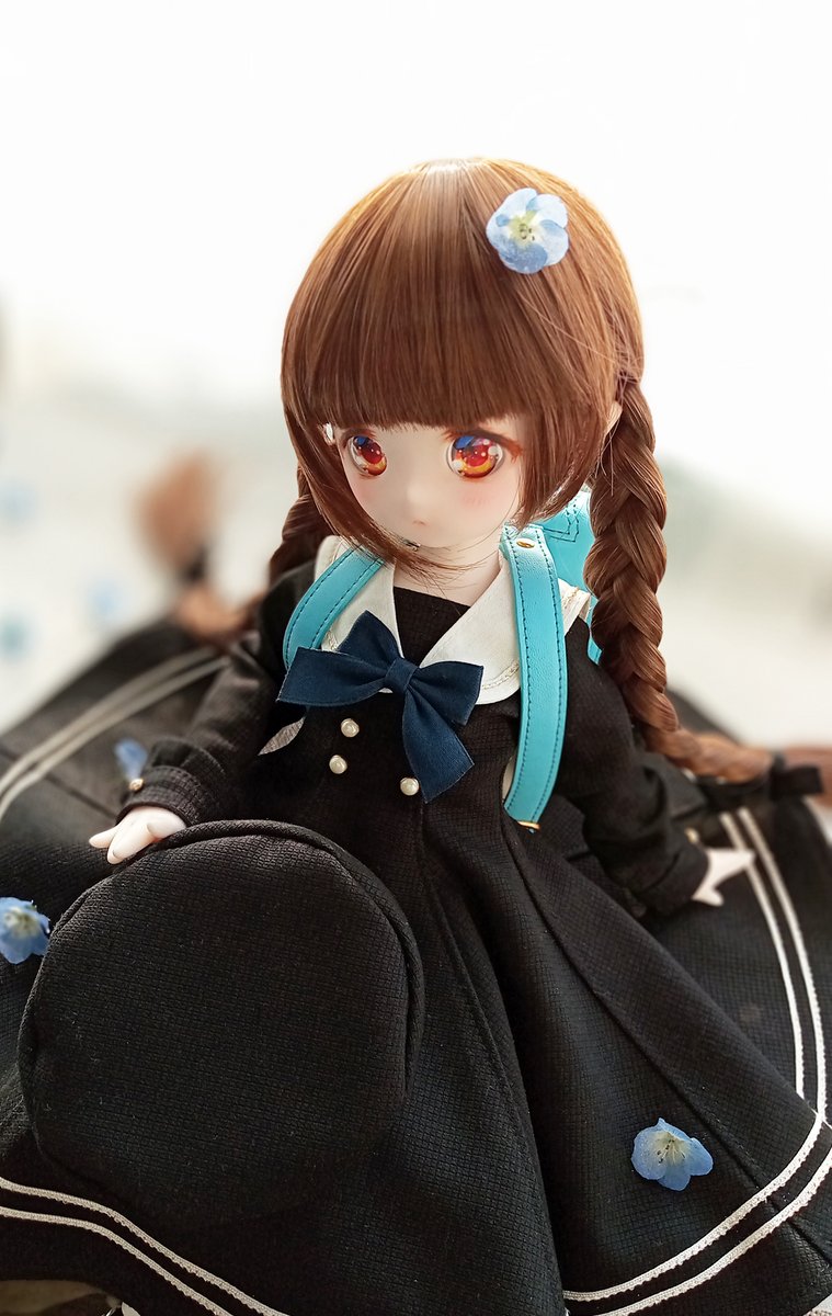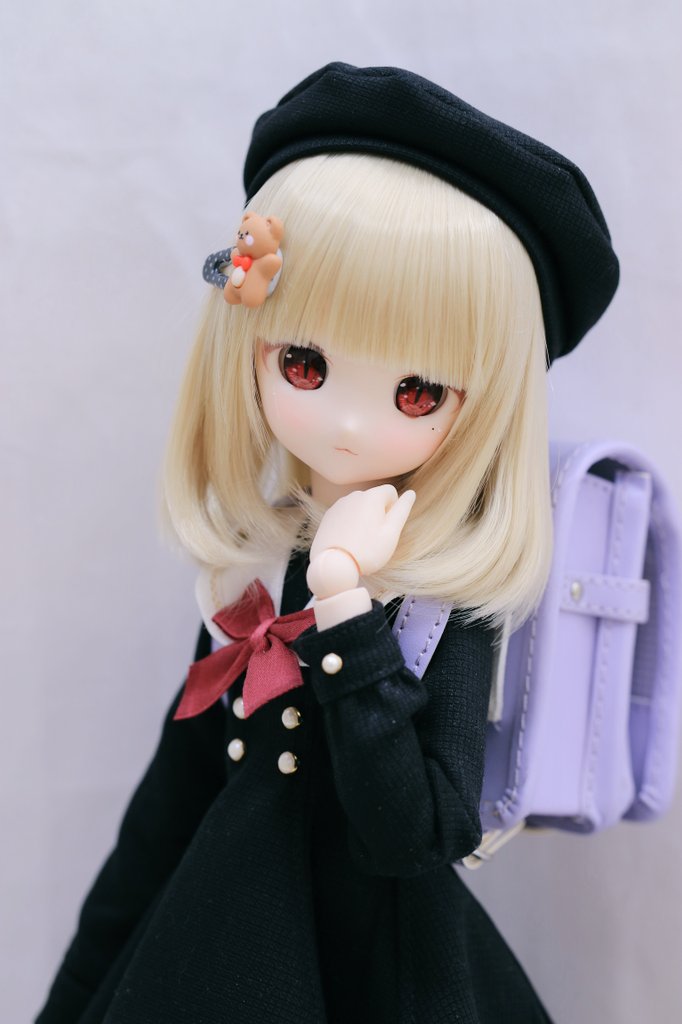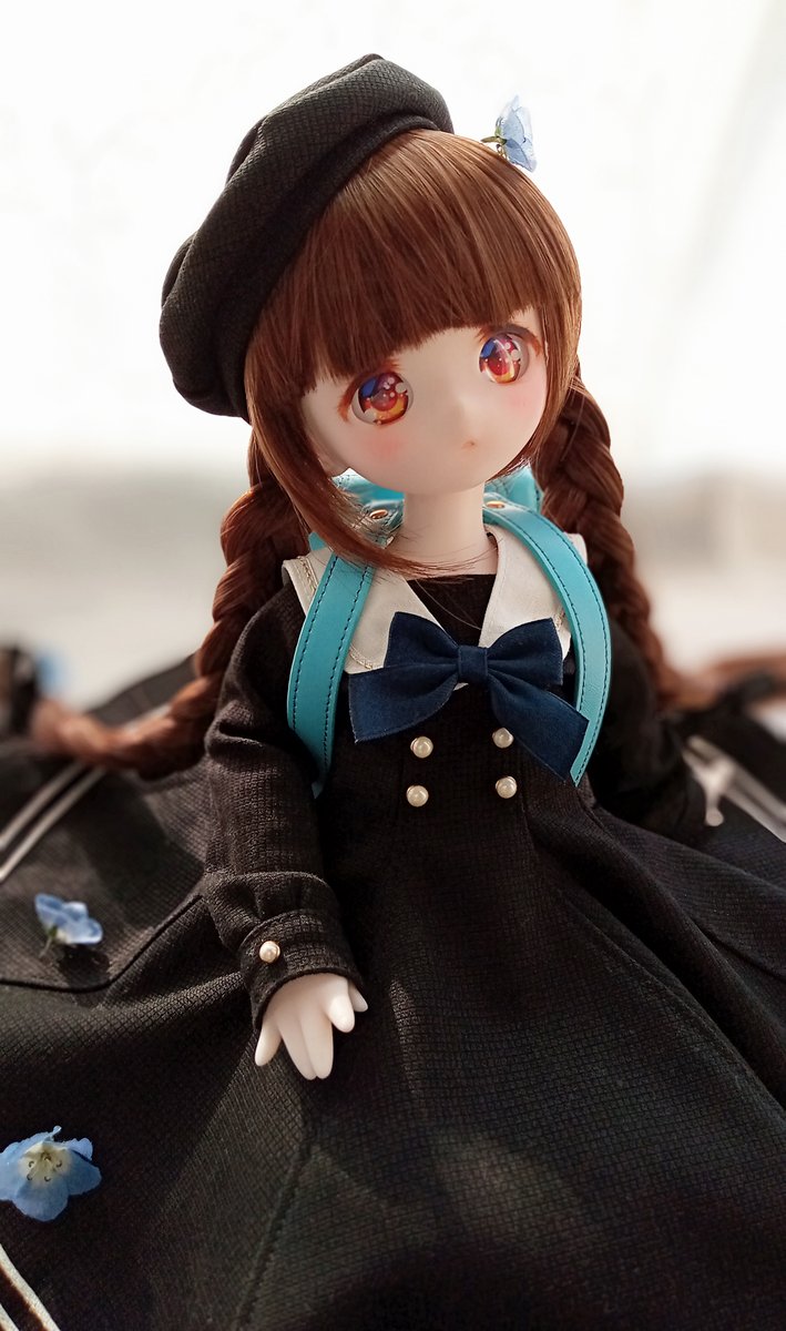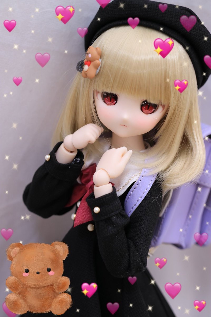 御美礎学園制服夏冬どっちもかわいい~🥲こんなに胴回りフィットしてるデザインなのにもちあし対応でkumakoちゃんにも着せれるのほんとにありがたい…🙏🏻✨帽子も制服同様にコシのある素材で作られてるのでかぶせやすく型崩れもしなくて最高や…🥹大好き大好き大好き #kumakoちゃん #みそのくに