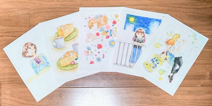 短歌イラスト本用のイラスト、土日の2日間で5枚着色したの! めっちゃ進んだ! 超頑張った✨ でもまだ全然終わらない(笑) だけどキレイに塗れてます🥰 もし本に出来なくてもポストカードにはします(小声) #みちのくCOMITIA #イラスト #水彩色鉛筆